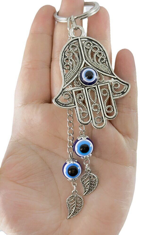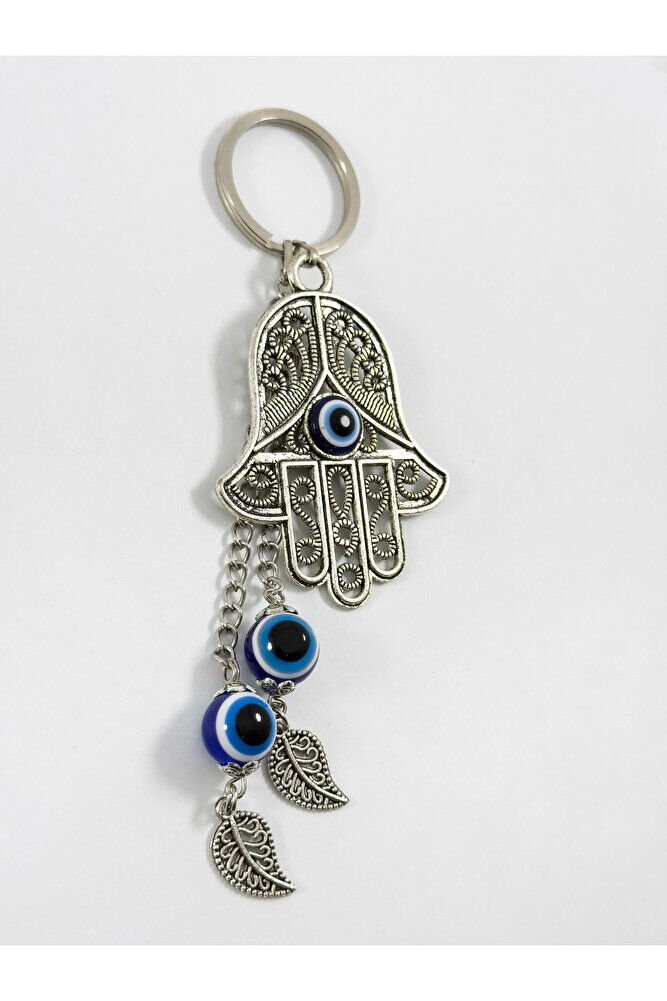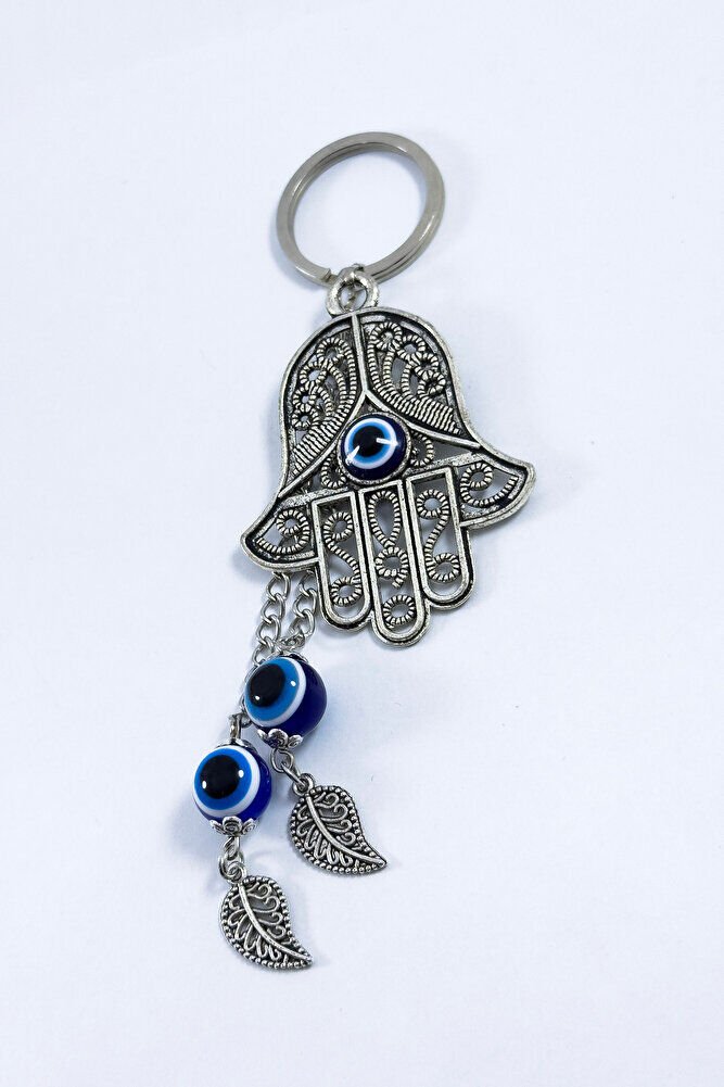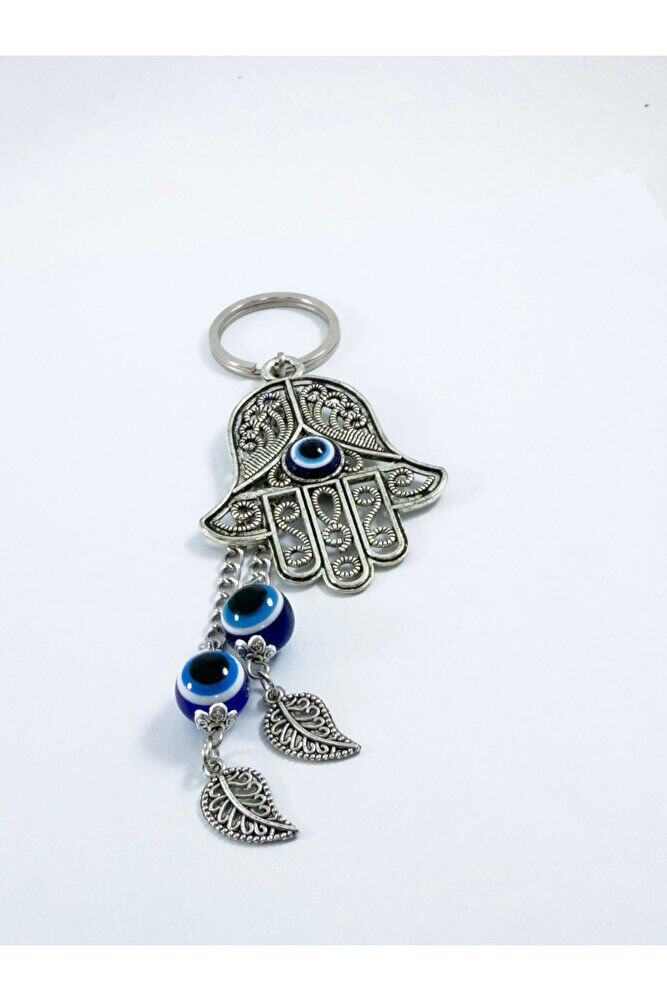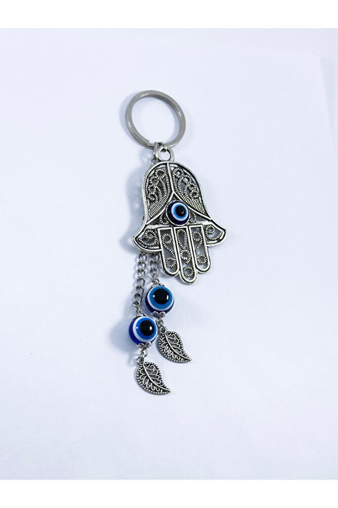Özel Tasarım Nazarlı Metal Hamse Salkım Zincir Anahtarlık, Metal Yapraklı Hediyelik Anahtarlık