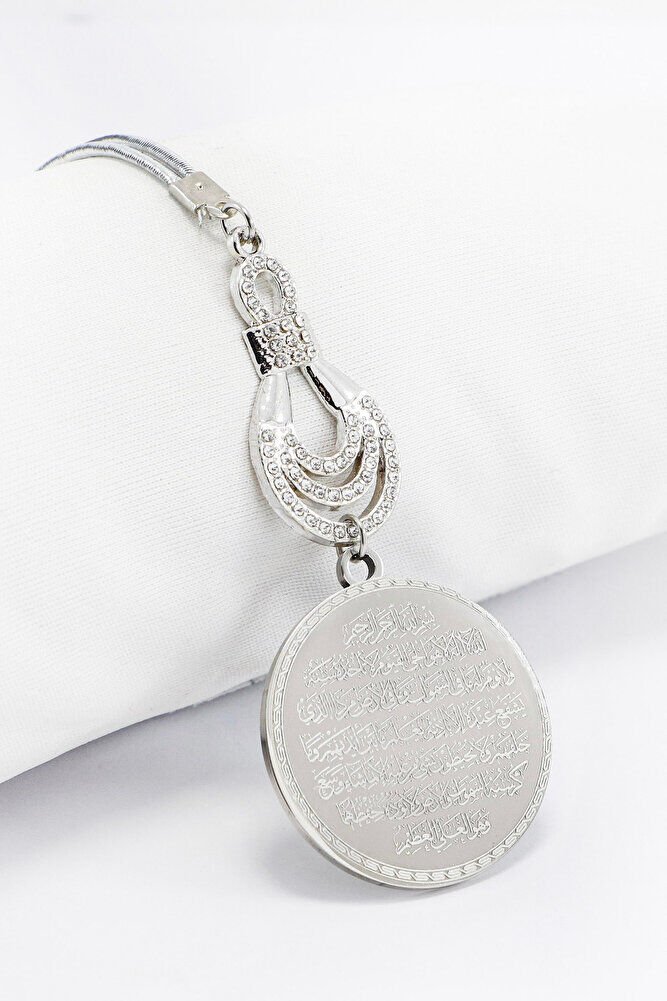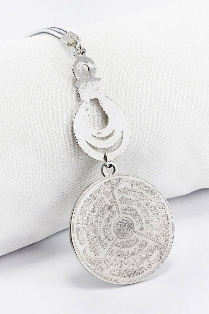 TÜM ÜRÜN FOTOGRAFLARI ENNEA ART FİRMASINA AİTTİR VE ÖZGÜN ÇALIŞMALARDIR.; İZİNSİZ KULLANIM, KOPYALAMA VEYA DAĞITIM KESİNLİKLE YASAKTIR.; GEREKLİ DURUMLARDA YASAL İŞLEM BAŞLATILACAKTIR.; Ürün el yapımıdır el yapımı olduğu için ufak farklılık ve düzensizlikler olasıdır.; Plaka gümüş renkli paslanmaz çeliktir.; Çelik plaka 3,5 cm ölçülerindedir.; Plaka çift taraflıdır.; Bir yüzünde Ayetel Kürsi diğer yüzünde ise Felak Nas İhlas bulunmaktadır.; Ayetel Kürsi, Bakara Suresi'nin 255. ayetidir ve İslam inancında çok önemli bir yere sahiptir.; Bu ayet, Allah’ın kudretini, egemenliğini ve her şeyi bilen, her şeyin sahibi olan Yüce Varlık olduğunu vurgular.; Ayet, Allah'ın her şeyin üzerinde olduğunu, hiçbir gücün O’nun izni olmadan hareket edemeyeceğini belirtir.; İnanılır kabul edilen bir başka önemli husus da, bu ayetin kişiyi kötülüklerden koruyacağına, huzur ve güven vereceğine inanılmasıdır.; Müslümanlar, Ayetel Kürsi'yi sıkça okur ve çeşitli durumlarda korunma, dua ve huzur arayışı için kullanırlar.; Bu nedenle, hem manevi hem de koruyucu bir anlam taşır.; Felak, Nas ve İhlas sureleri, İslam inancında korunma ve manevi güç sağlamak için okunan önemli dualardır.; İnanılır kabul edilir ki, Felak ve Nas sureleri, özellikle kötü gözlerden, nazardan ve şeytani etkilerden korunmak için okunur.; Felak suresi, karanlık güçlere karşı koruma sağlarken, Nas suresi de olumsuz düşünceler ve zararlı enerjilerden korunmayı sağlar.; İhlas suresi ise, Allah’ın birliğini ve sınırsız gücünü ifade eder, bu sureye inanılır ki, kişi manevi huzur ve Allah’ın koruması altında olur.; Bu sureler, sıkça güven ve huzur arayışında olanlar için okunur ve ruhsal dengeyi sağlamak isteyenlere büyük fayda sağladığına inanılır.;