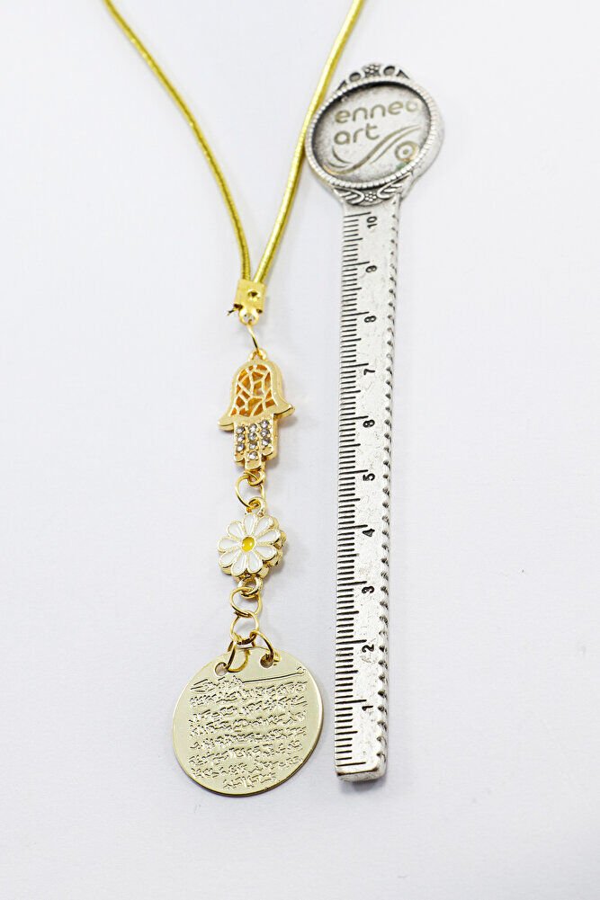 Parlak Taşlı Hamse Eli Papatyalı Metal Ayetel Kürsi Dualı Dikiz Ayna Süsü, Araba Hediyesi