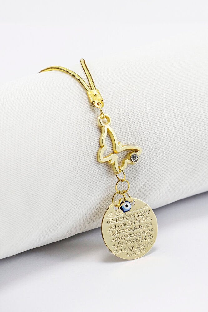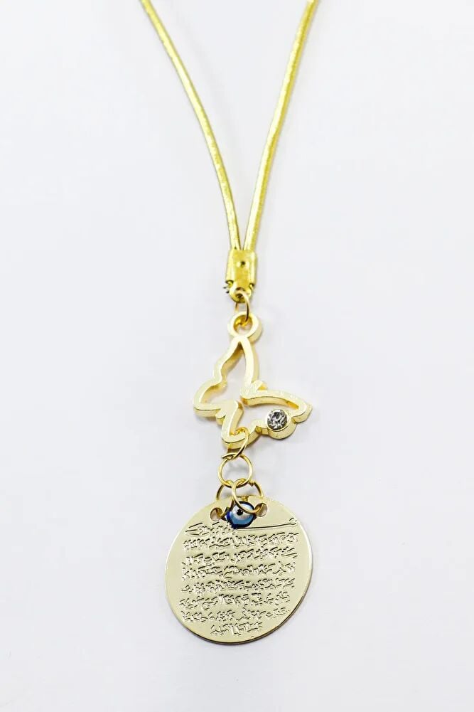 Parlak Taşlı Kelebek Metal Ayetel Kürsi Dualı Dikiz Ayna Süsü, Araba Hediyesi