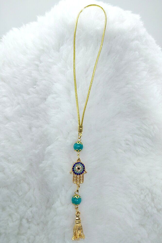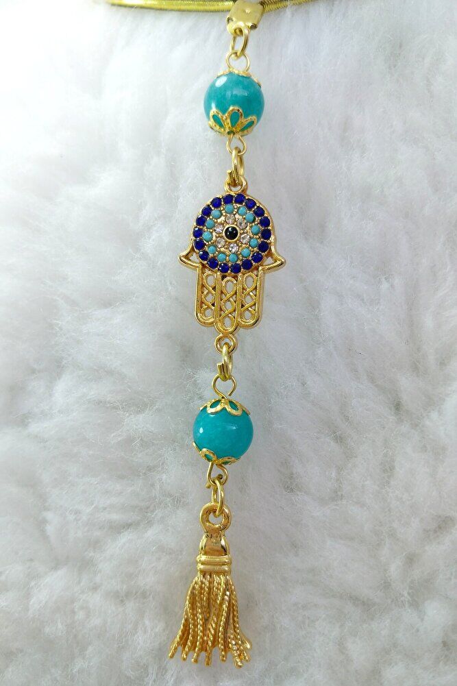 Parlak Taşlı Nazar Fatıma Eli Araba Dikiz Ayna Süsü, Püsküllü Turkuaz Taşlı Lüks Yeni Araba Hediyesi