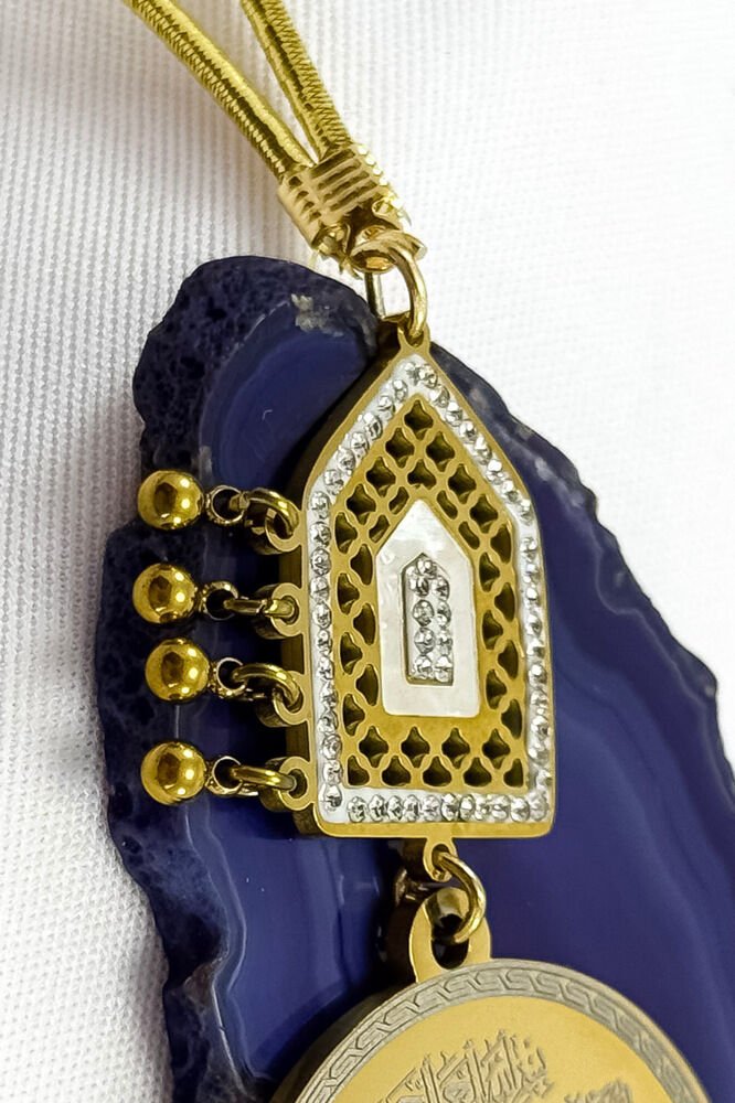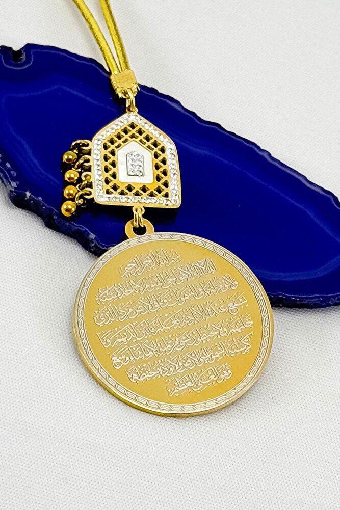 Parlak Taşlı Salkım Toplu Ayetel Kürsi Felak Nas İhlas Komple Paslanmaz Çelik Araba Dikiz Ayna Süsü