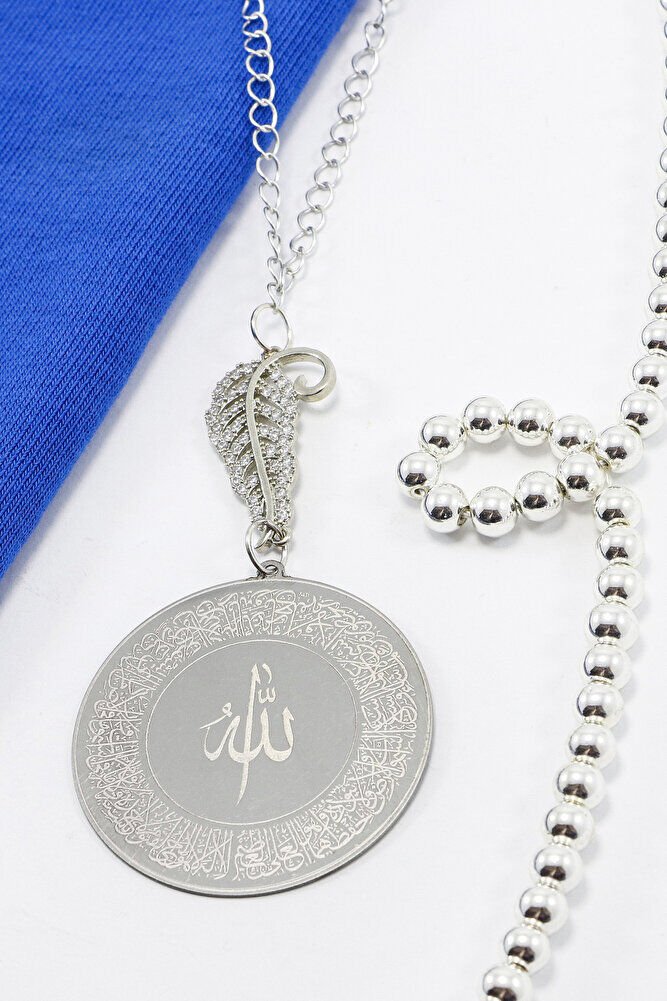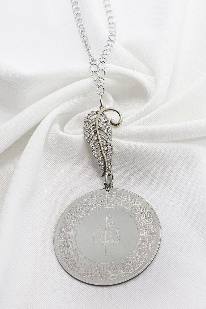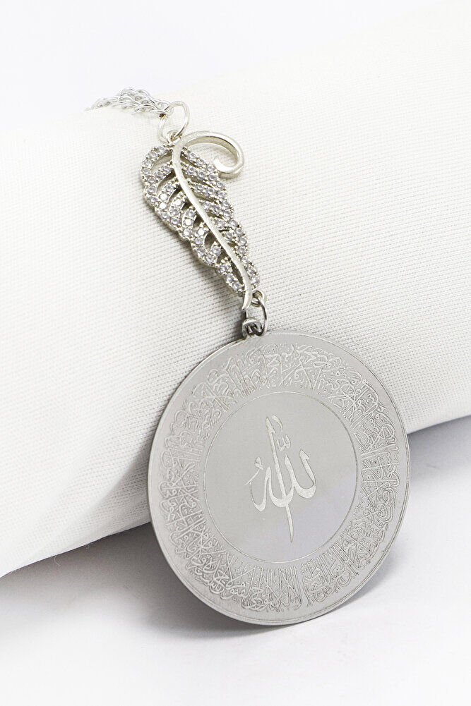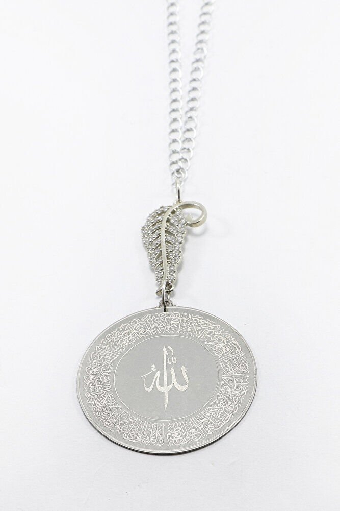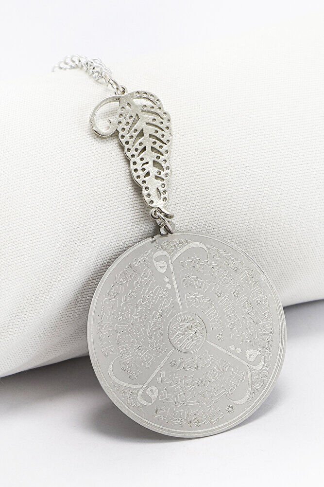 Parlak taşlı yaprak aksesuarlı, gümüş renkli Allah lafzı, Ayetel Kürsi, Felak, Nas ve İhlas dualarını içeren 3,5 cm dikiz aynası süsü.; Hem şık hem manevi anlam taşıyan bu aksesuar, aracınıza veya istediğiniz yere asılabilir.; TÜM ÜRÜN FOTOĞRAFLARI ENNEA ART FİRMASINA AİTTİR VE ÖZGÜN ÇALIŞMALARDIR.; İZİNSİZ KULLANIM, KOPYALAMA VEYA DAĞITIM KESİNLİKLE YASAKTIR.; GEREKLİ DURUMLARDA YASAL İŞLEM BAŞLATILACAKTIR.