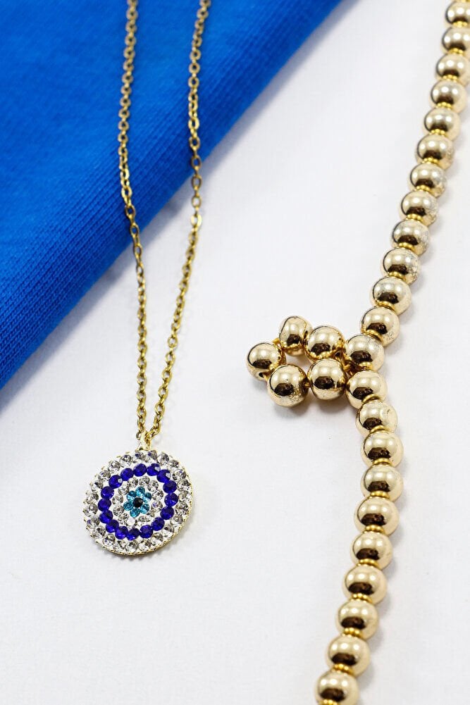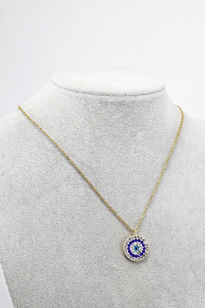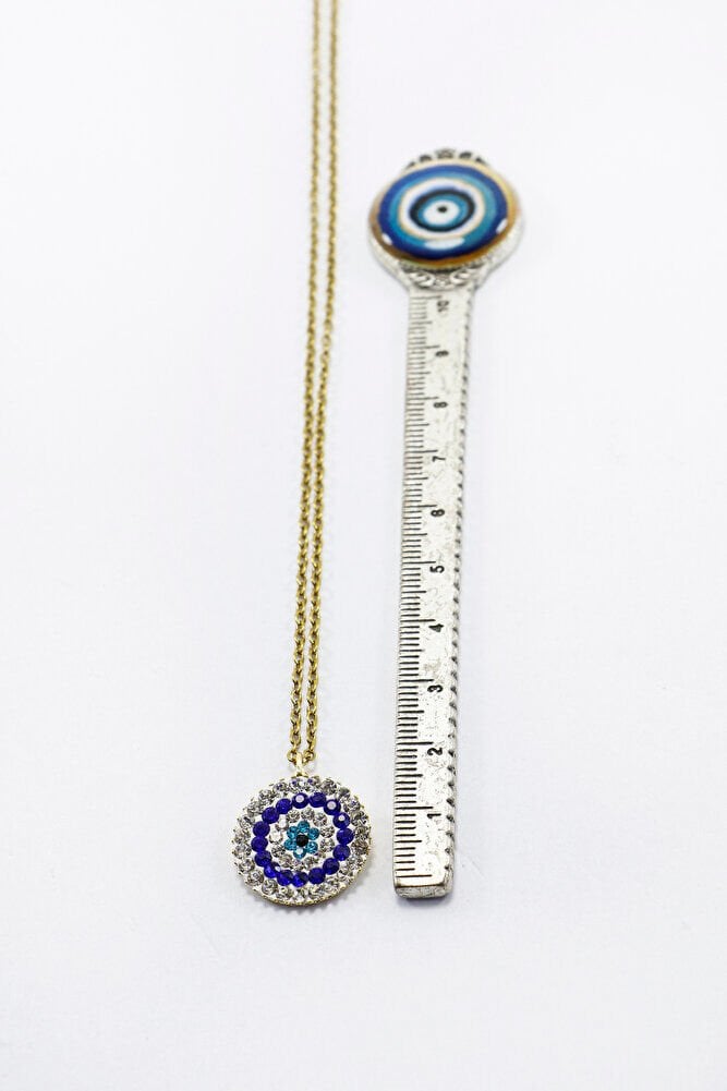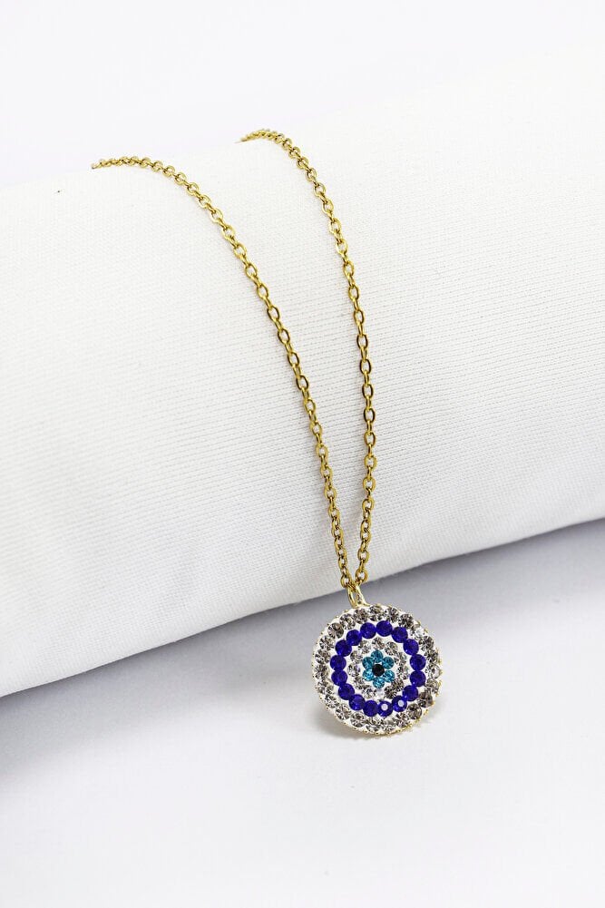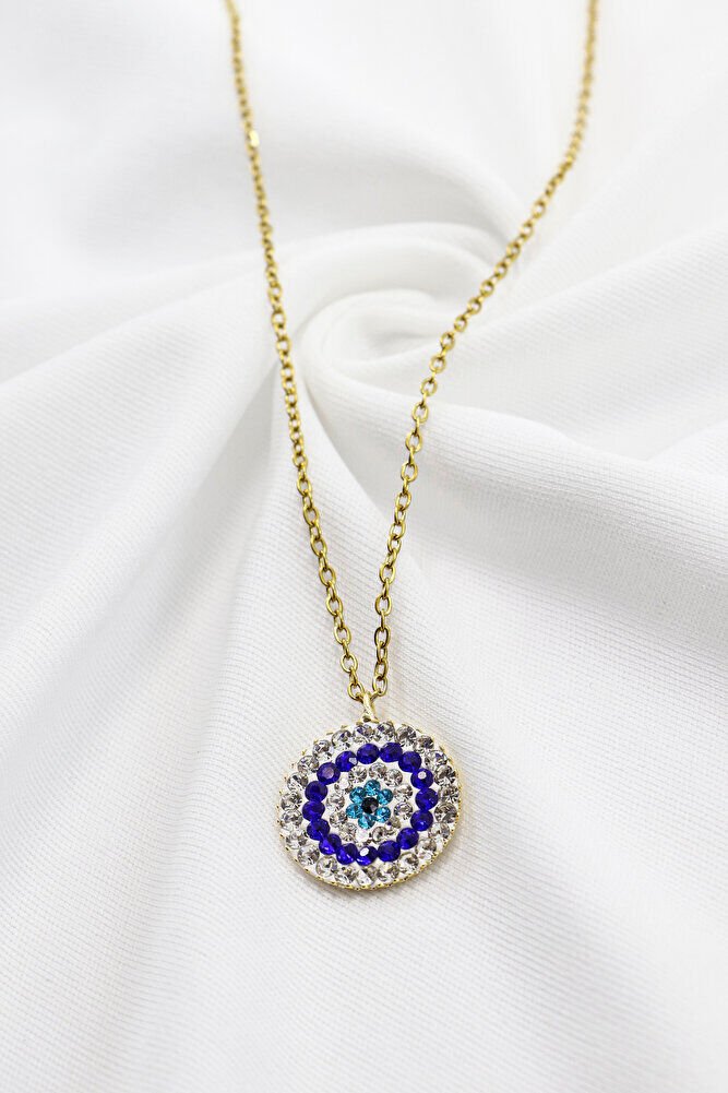 Paslanmaz Çelik Zincir ile Parlak Taşlı Nazar Boncuğu Kolye 60 cm