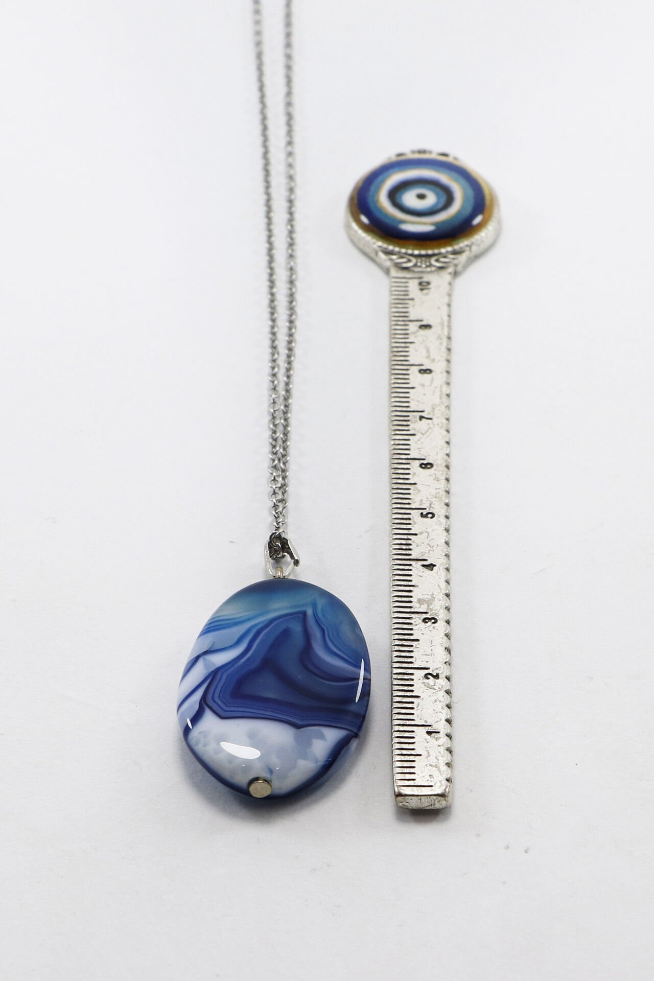Paslanmaz çelik zincirli, 60 cm uzunluğundaki bu şık kolye, doğal akik taşıyla tasarlanmıştır.