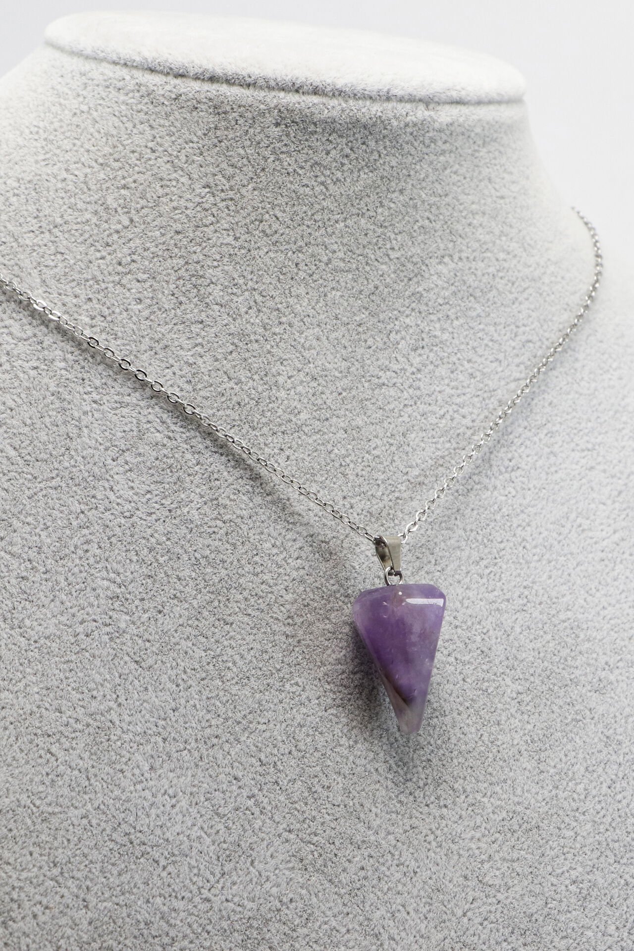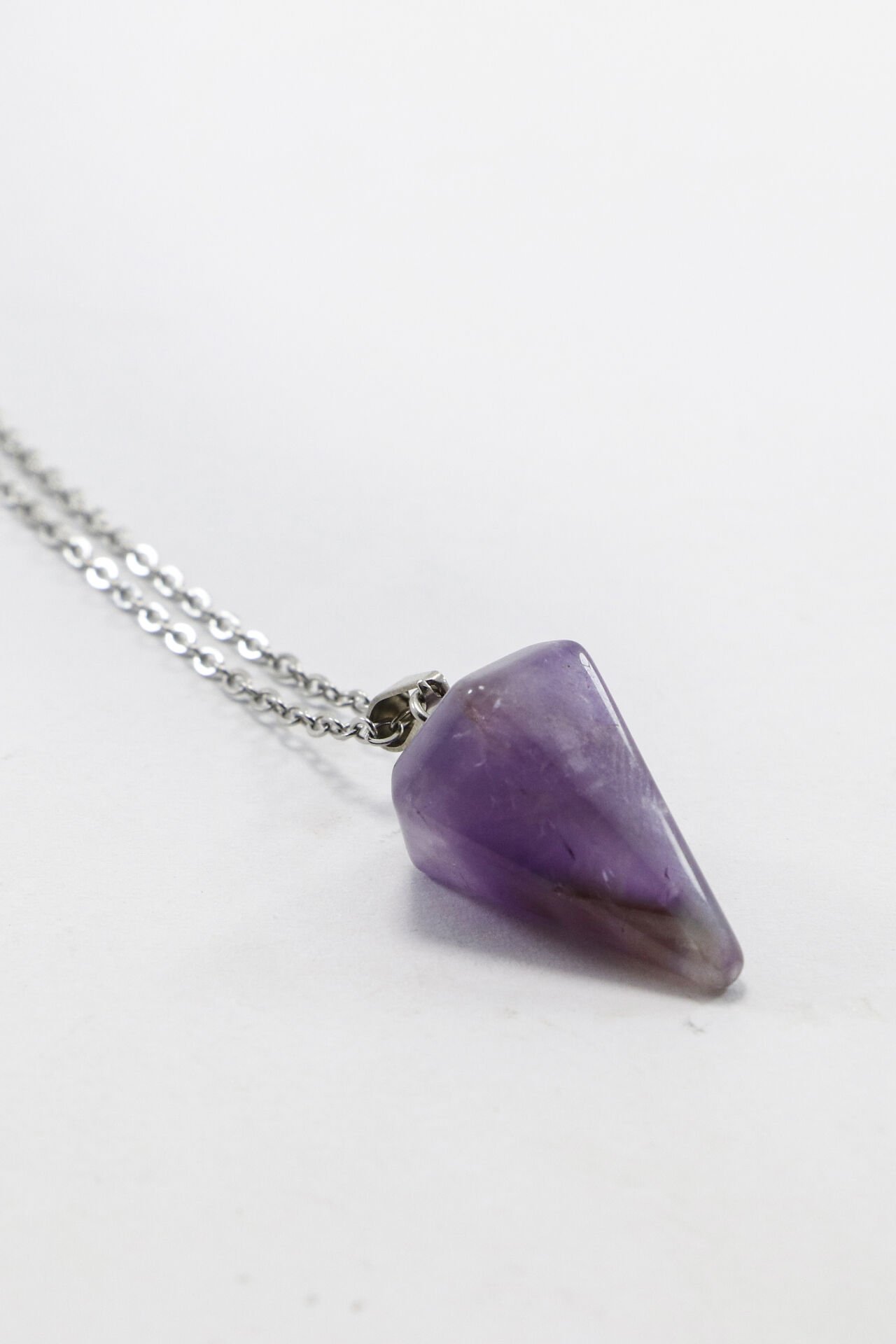 Paslanmaz Çelik Zincirli Ametist Doğal Taşlı Kolye, Hediyelik Bijuteri Aksesuar (60 cm)