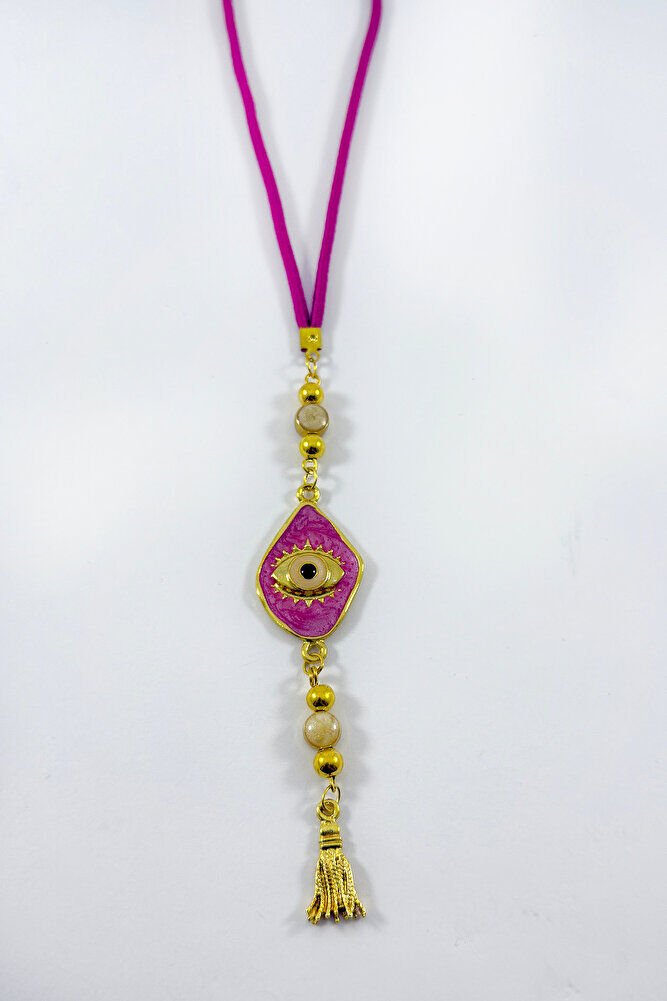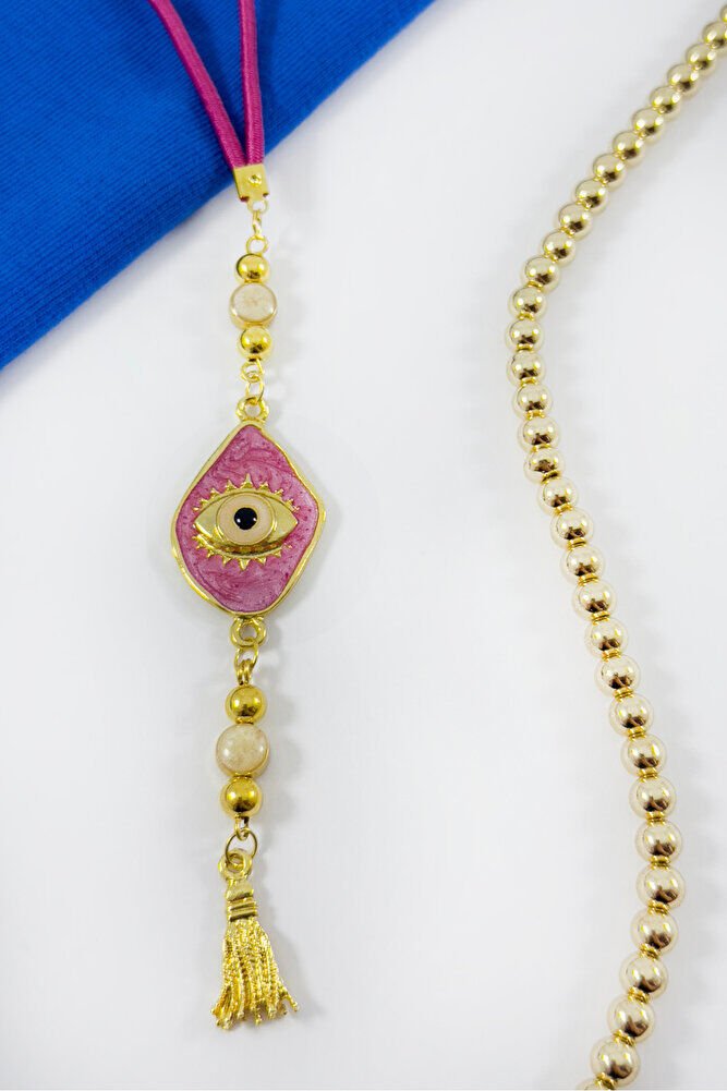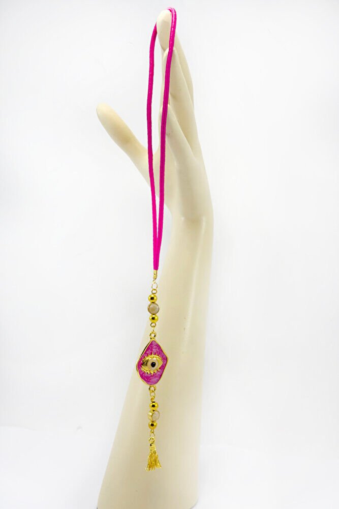 Pembe Boncuklu Göz Figürlü Araba Dikiz Ayna Süsü, Yeni Araba Hediyesi