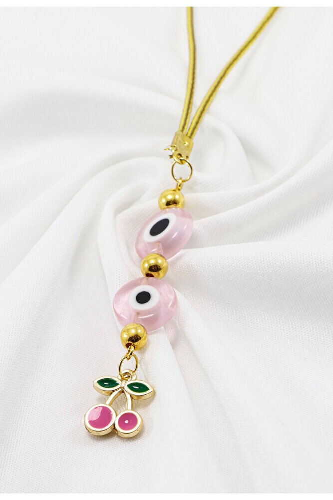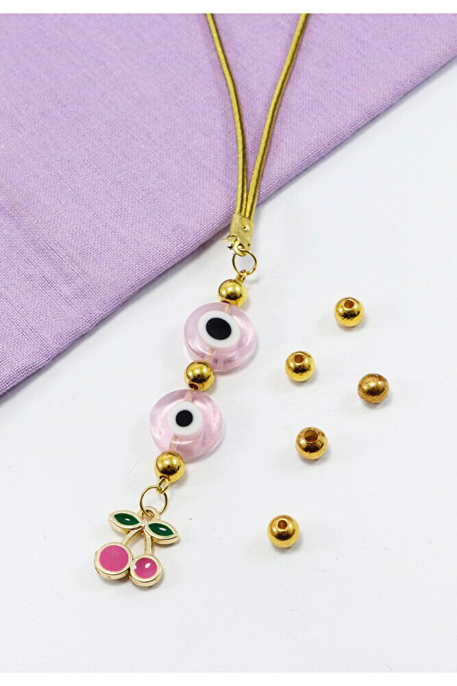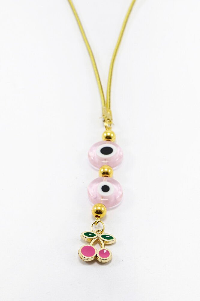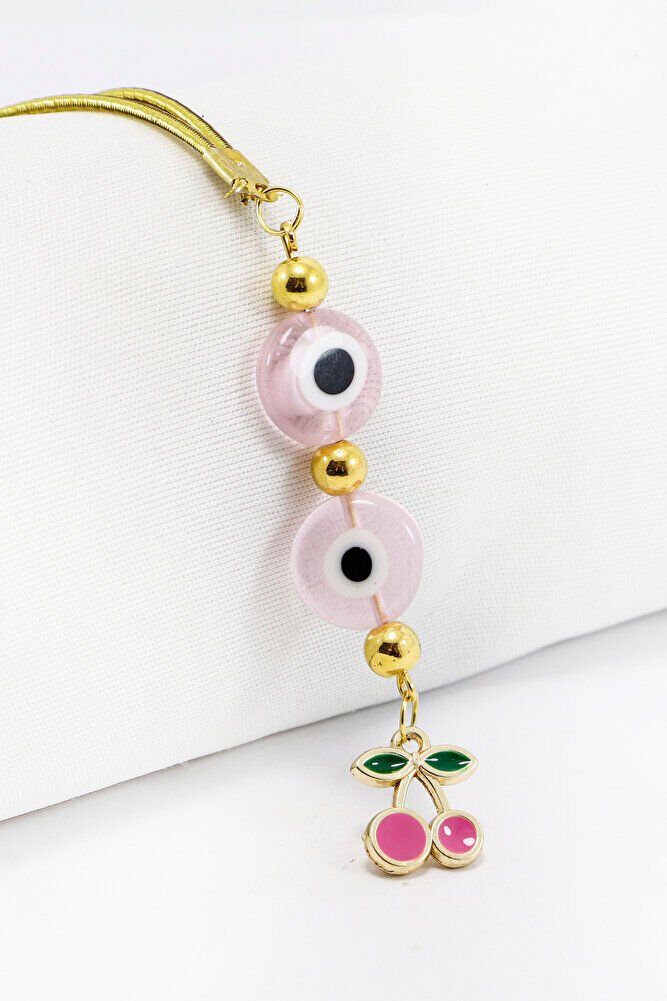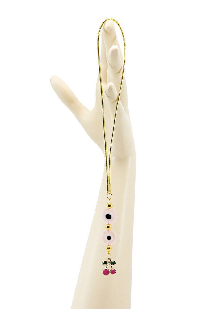 Pembe Cam Yassı Nazar Boncuklu Salkım Kiraz Araba Dikiz Ayna Süsü, Yeni Araba Hediyesi