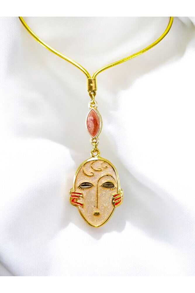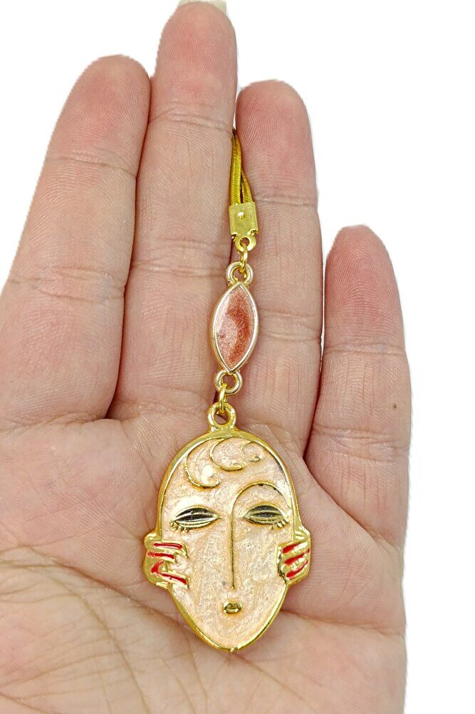 Pembe Elips Boncuk Detaylı Yüz Figürü Dikiz Ayna Süsü, Metal Lineart Tarz Yeni Araba Hediyesi