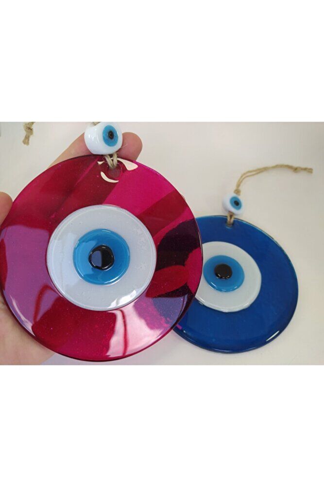 Pembe Ve Turkuaz Nazar Boncukları El Yapımı Füzyon Cam Duvar Dekoru 12 Cm Ikili Set