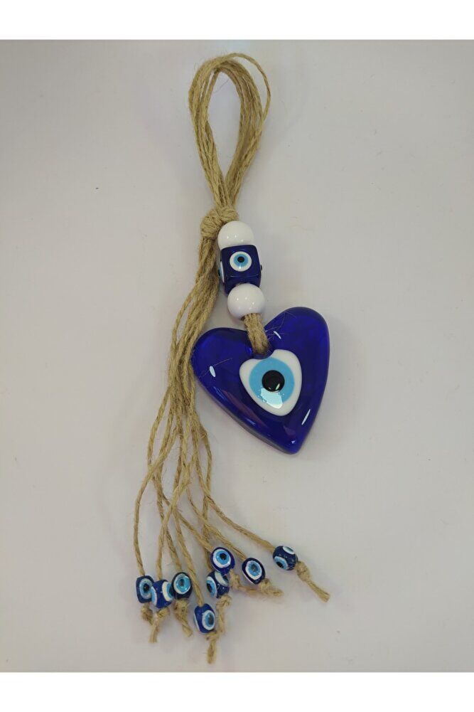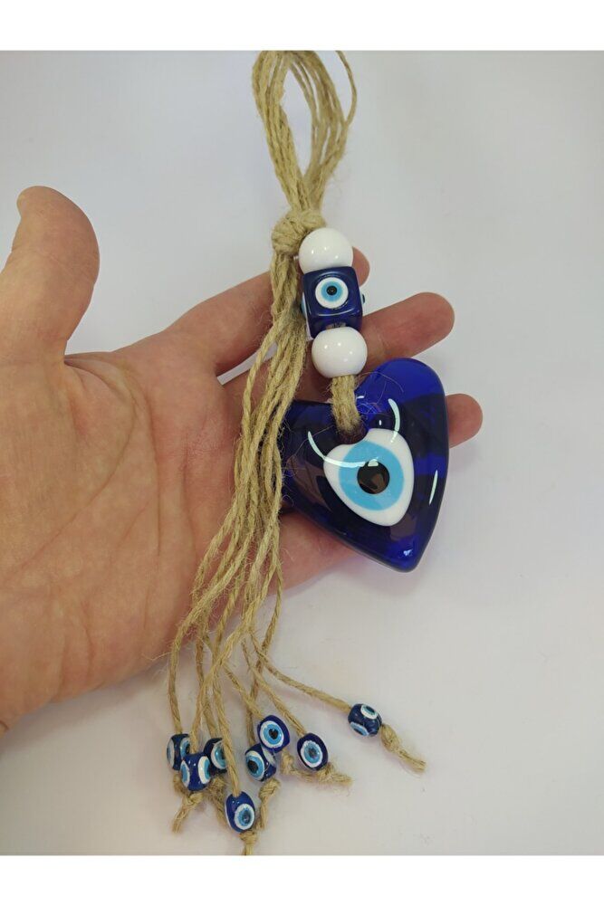 Ürün el yapımıdır. ; Kalp nazar boncuğu 6*6 cm, tüm dekor 22-24 cm boyutundadır. ; Sadece kalp nazar boncuğu camdan imal edilmiştir. ; Diğer boncuklar polyesterdir. ; El yapımı olduğu için ufak farklılık ve düzensizlikler olasıdır.;