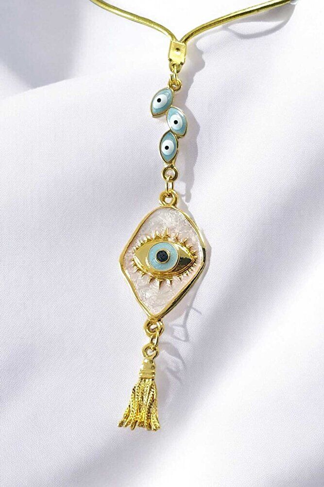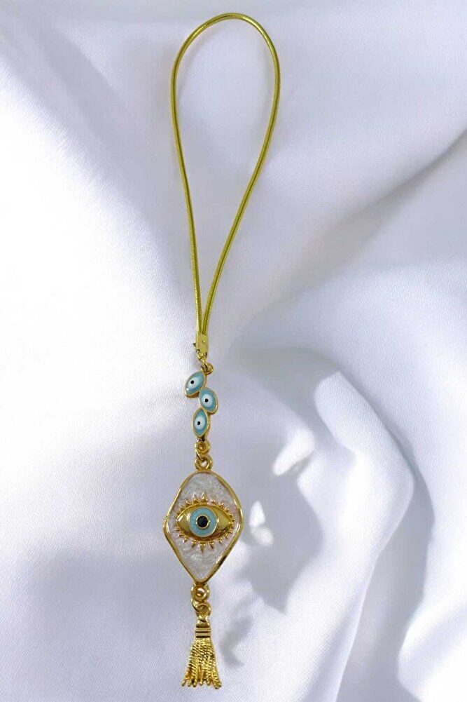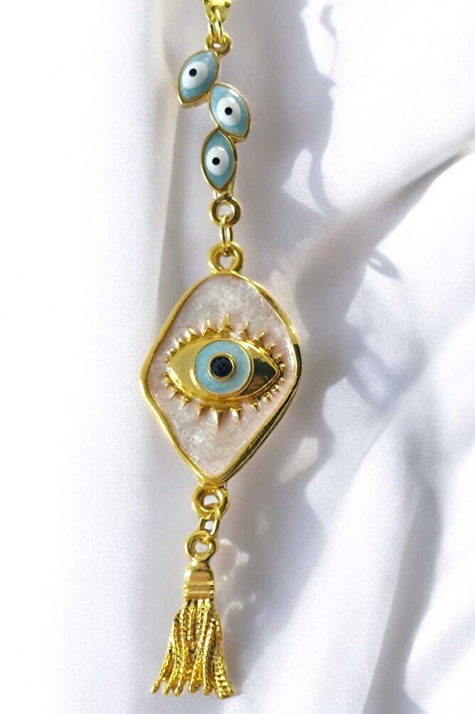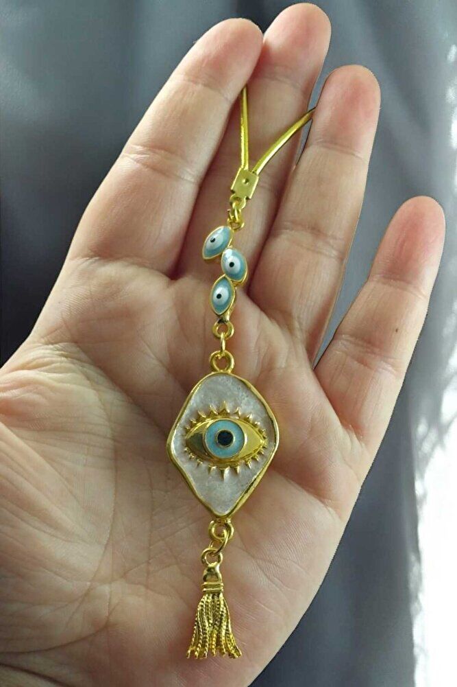 Salkım Nazar Boncuğu Püsküllü Dikiz Ayna Süsü, Sedefli Göz Figürü Tarz Yeni Araba Hediyesi