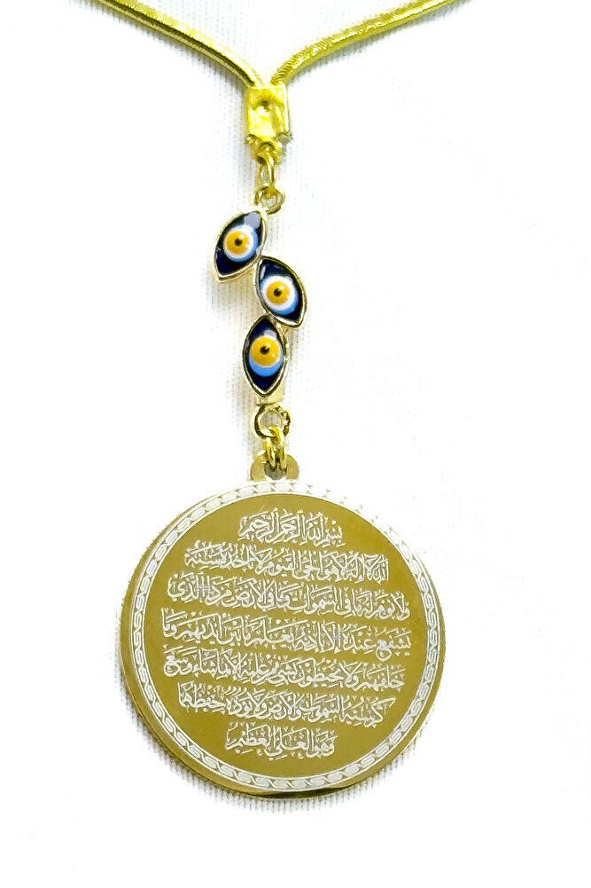 Salkım Nazar Boncuklu Çelik Çift Taraflı Ayetel Kürsi, Felak Nas Ihlas Dikiz Ayna Süsü