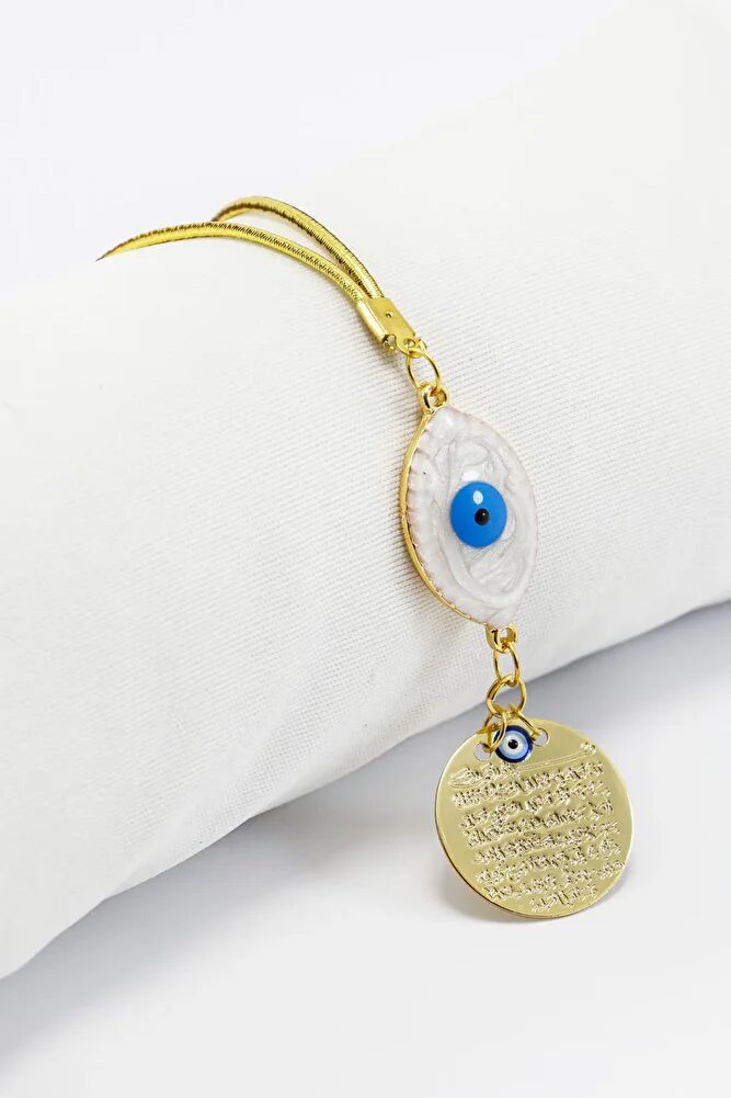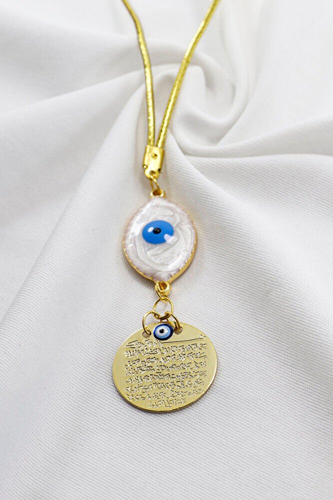 Sedefli Göz Figürlü Metal Ayetel Kürsi Araba Dikiz Ayna Süsü, Yeni Araba Hediyesi