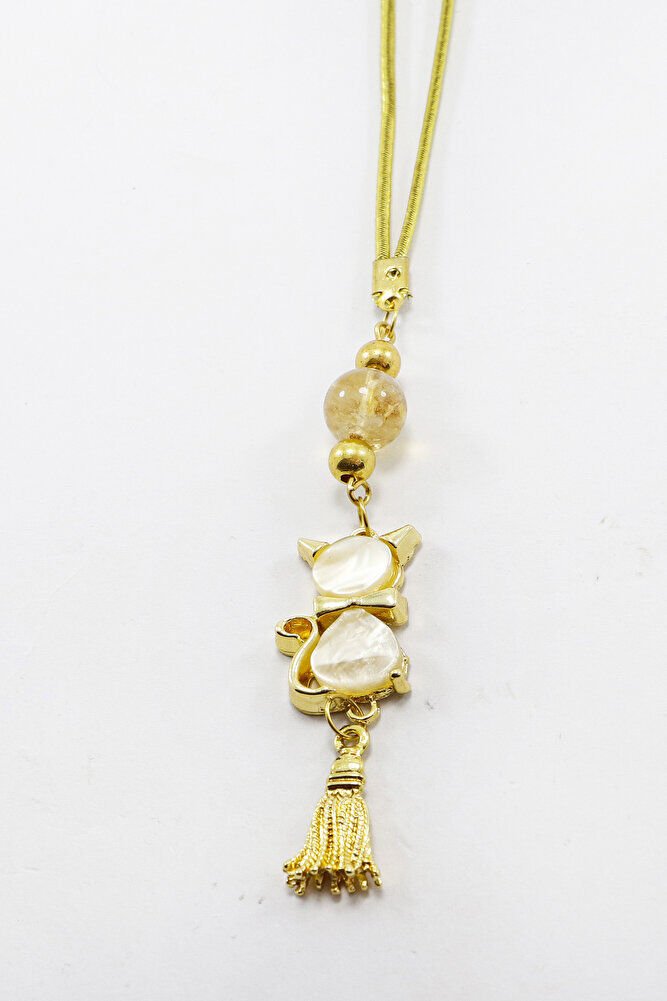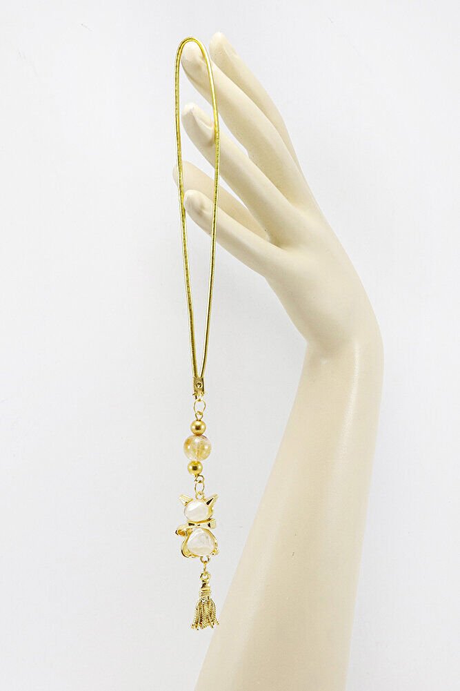 Sedefli Kedicik Püsküllü Araba Dikiz Ayna Süsü Doğal Taşlar: Sitrin