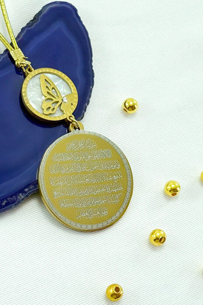 Sedefli Kelebek Ayetel Kürsi Felak Nas Ihlas Komple Paslanmaz Çelik Araba Dikiz Ayna Süsü