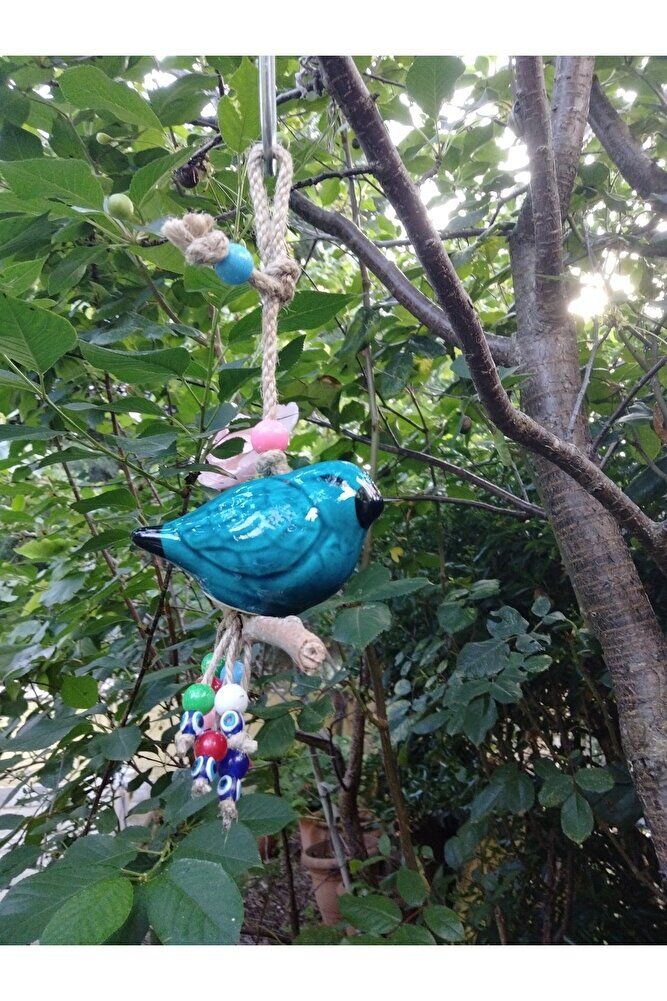 Seramik Kuş Dal Üstünde Kuş Duvar Dekoru Bahçe Süsü El Yapımı Hediyelik Eşya