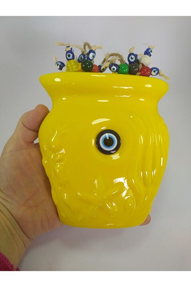 El yapımı seramik malzemesiyle üretilmiş, her bir nazarlık vazo benzersiz ve özgün bir tasarıma sahiptir; Sade ve şık görünümüyle mekanınıza modern bir dokunuş katar; Nazarlık duvar dekoru olarak kullanıma uygun, evinizin enerjisini dengeleyerek pozitif bir atmosfer yaratır; Sarı renk seçeneğiyle sıcak ve huzurlu bir ambiyans sağlar;