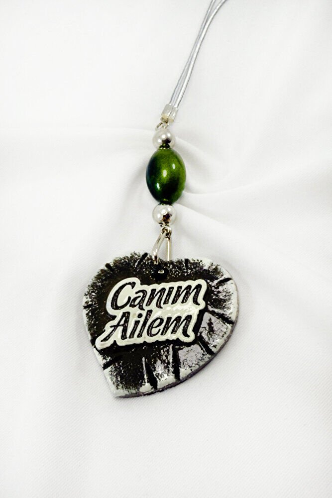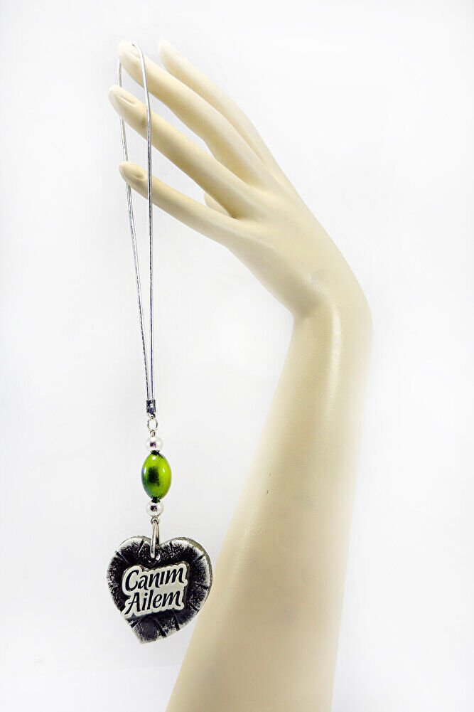 Sevimli Cam Uğur Böcekli Canım Ailem Yazılı Kalpli Araba Dikiz Ayna Süsü