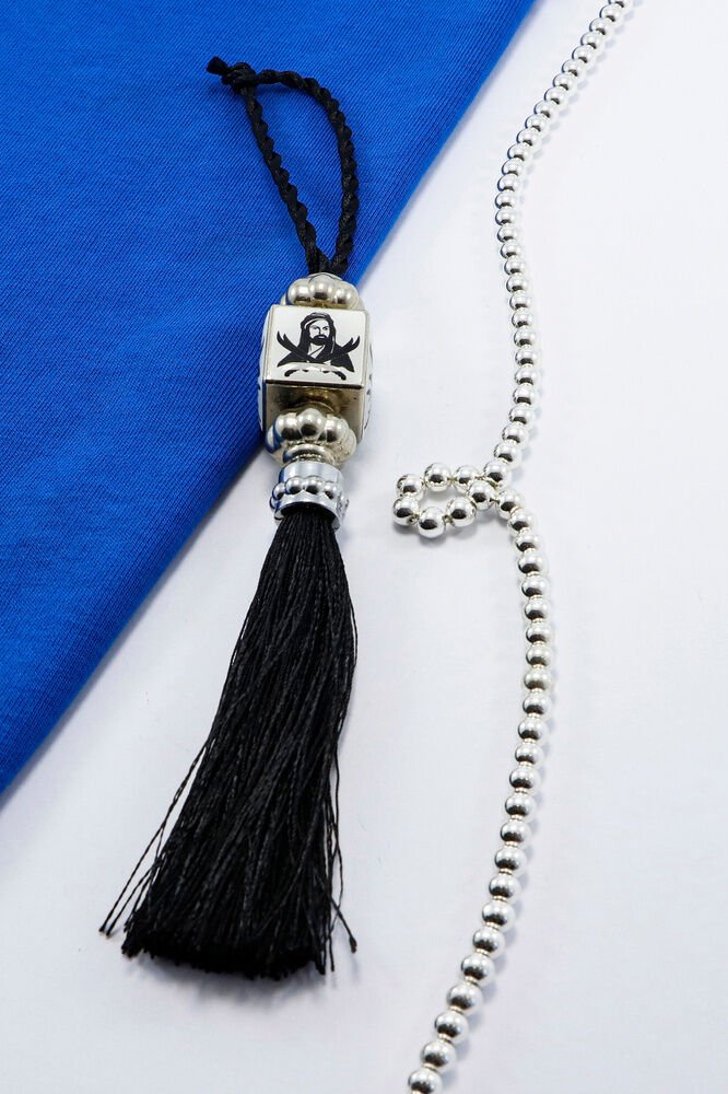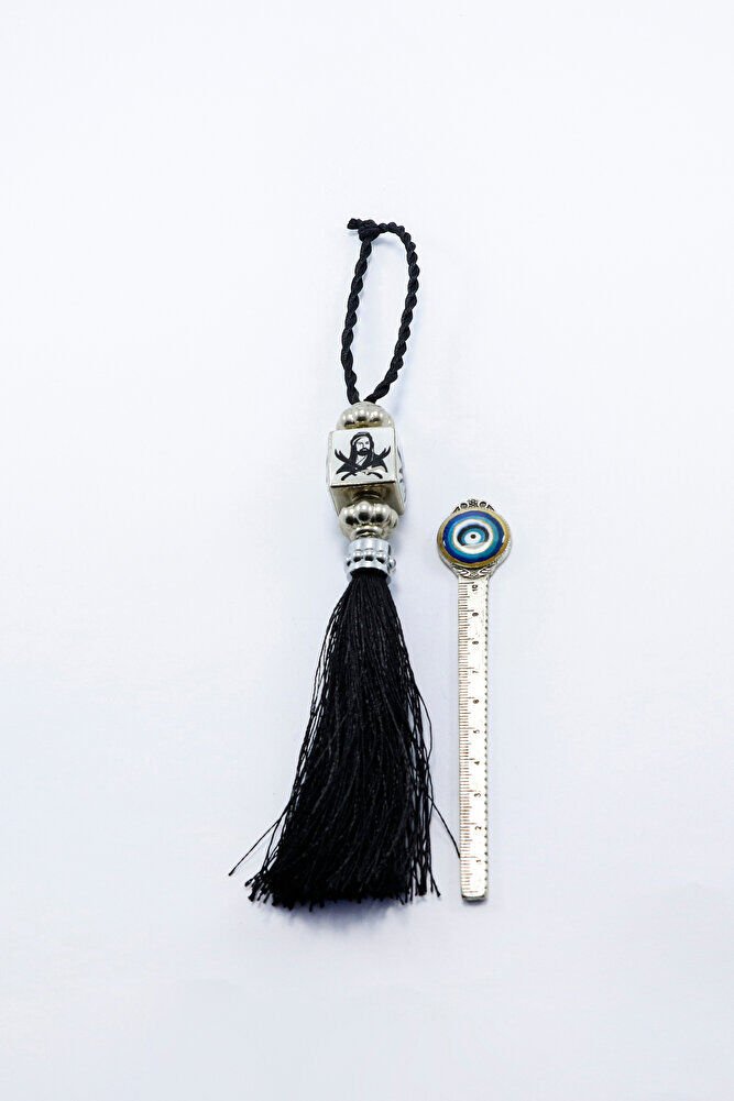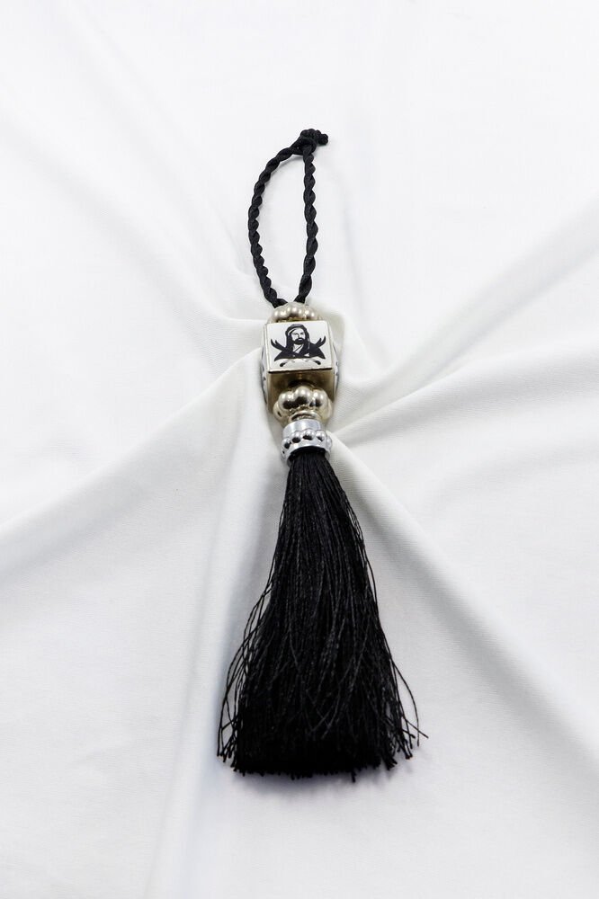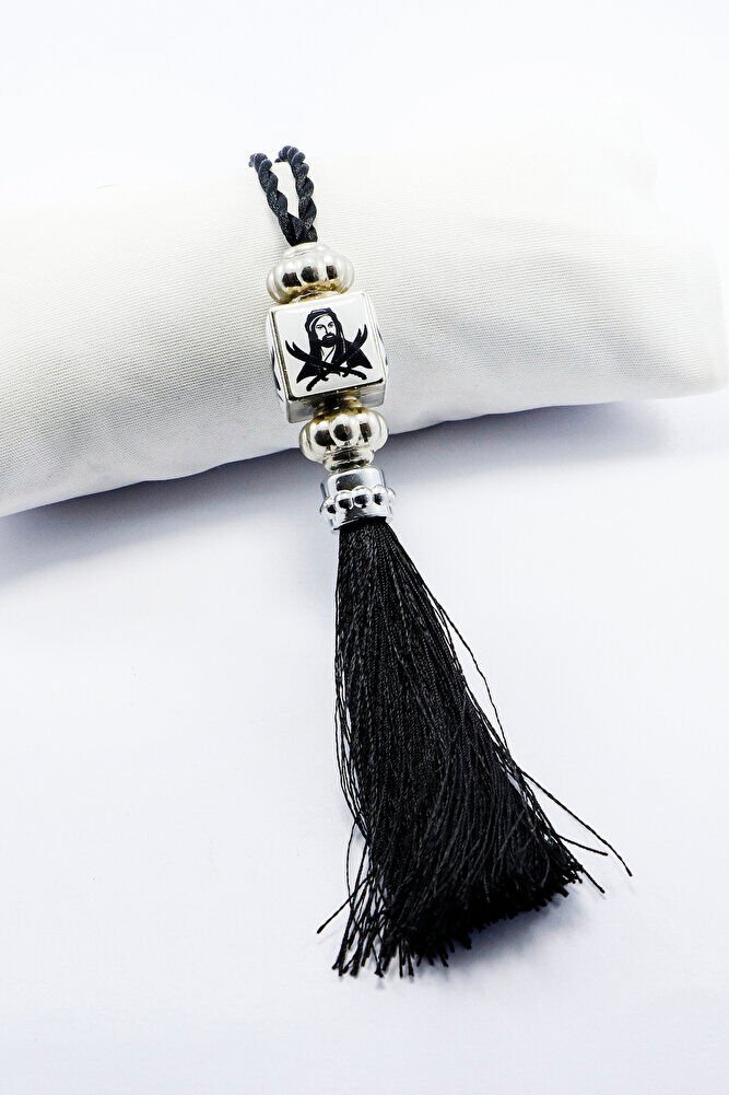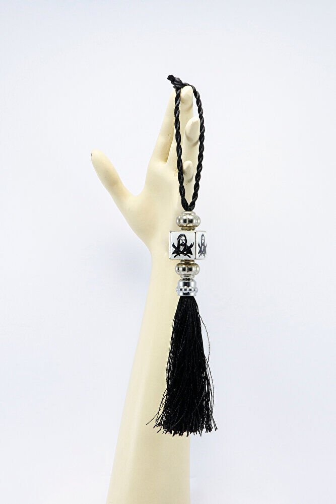 Siyah Beyaz Hz.Ali Araba Dikiz Ayna Süsü, Püsküllü Araba Dekoru