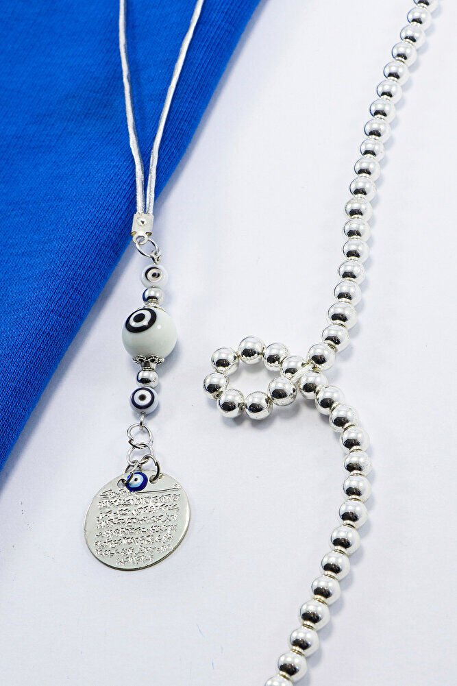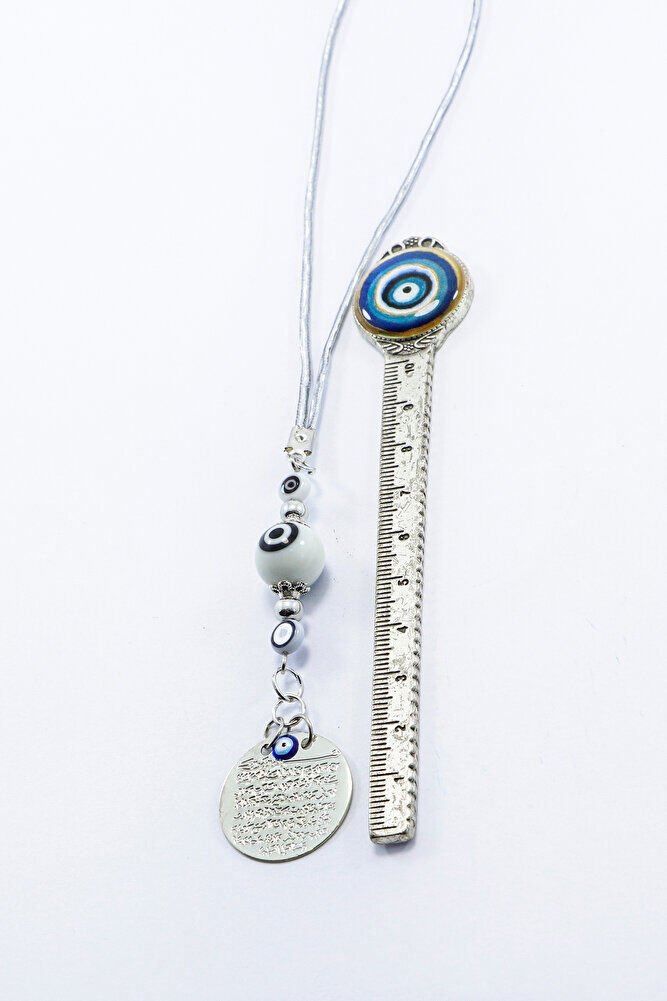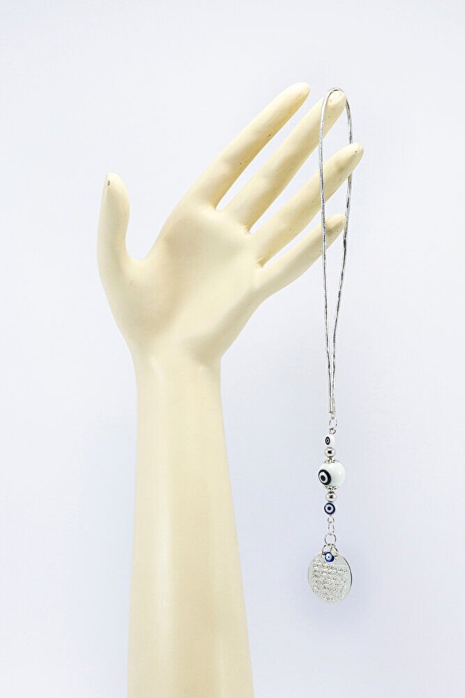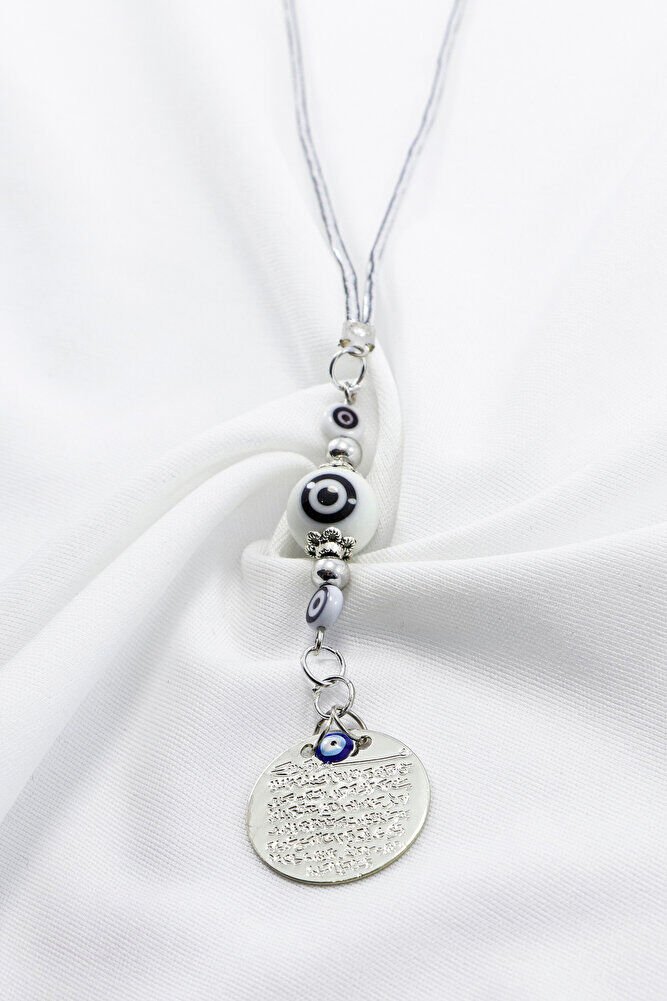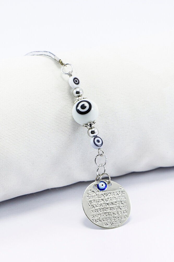 Siyah Beyaz Nazar Boncuklu Küçük Metal Ayetel Kürsi Araba Dikiz Ayna Süsü