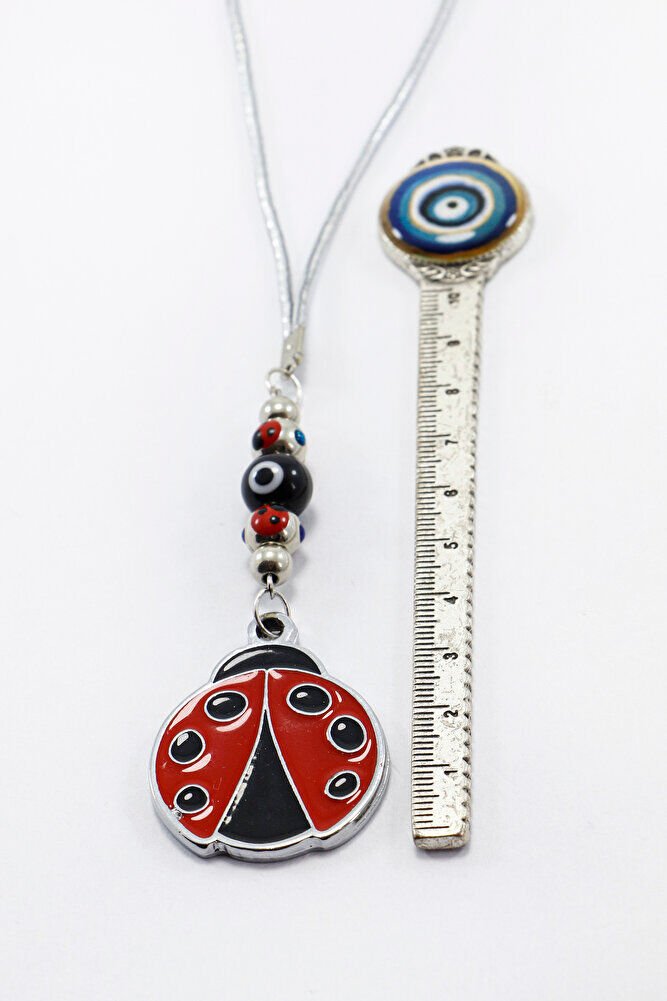 Siyah Cam Nazar Boncuklu Metal Uğur Böceği Araba Dikiz Ayna Süsü, Yeni Araba Hediyesi
