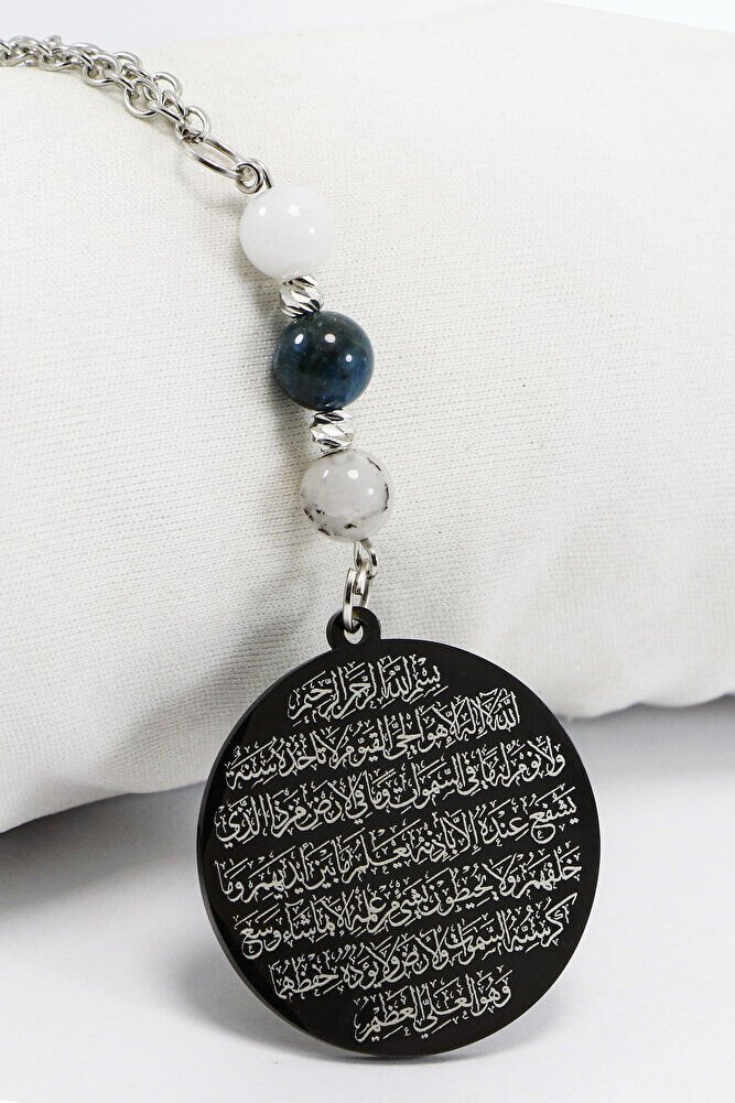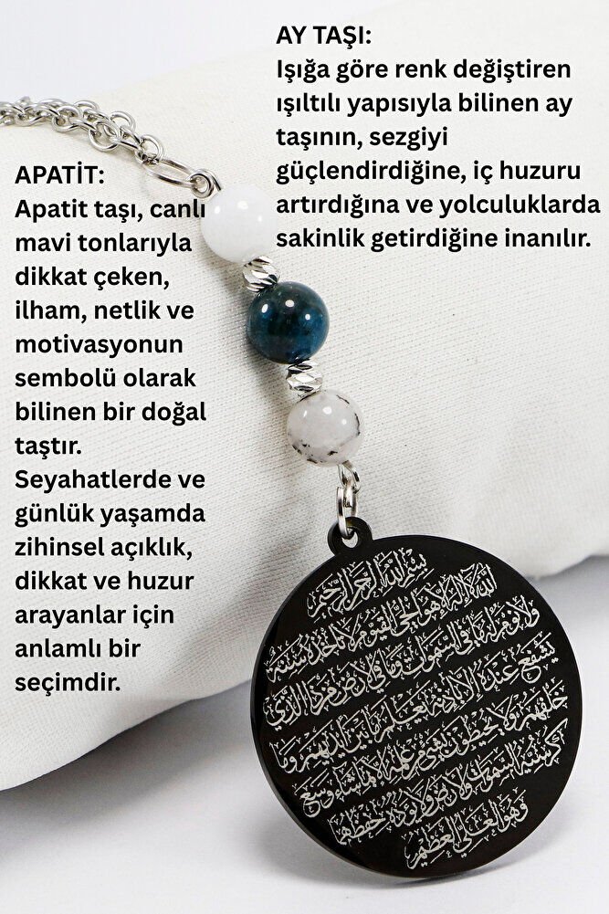 Siyah Çelik Ayetel Kürsi Dört Kul Araba Dikiz Ayna Süsü, Doğal Taşlar: Ay Taşı, Apatit