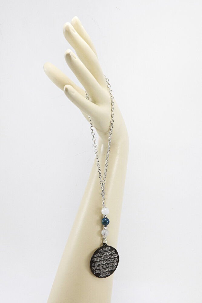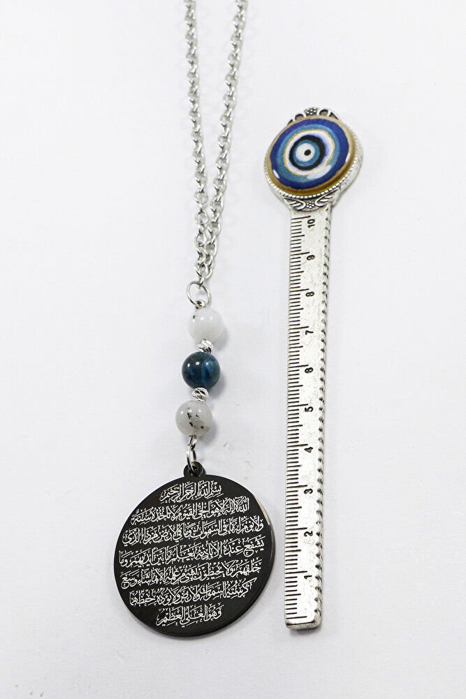 Siyah paslanmaz çelikten üretilmiş bu zarif dikiz ayna süsü, bir yüzünde güçlü koruma duası olan Ayetel Kürsi, diğer yüzünde ise “Dört Kul” olarak bilinen İhlas, Felak, Nas ve Kafirun surelerini barındırır.; Bu dualar, İslam inancında nazardan, kötü enerjilerden, hasetten ve olumsuz ruh hallerinden korunmak için sıkça okunur.; Üründe yer alan Ay Taşı, sezgileri güçlendirdiğine ve duygusal denge sağladığına inanılan huzur taşıdır.; Apatit taşı ise odaklanmayı artırma, zihinsel berraklık ve motivasyon için tercih edilir.; Bu kombinasyon, hem manevi anlamda hem de enerji düzeyinde kullanıcıya destek sunar.; Araç içinde huzurlu ve dengeli bir atmosfer oluşturmak isteyenler için idealdir.; Ayrıca yeni araç sahipleri için anlamlı ve şık bir hediye seçeneğidir.; Taşlar doğal olduğu için her biri farklı renk ve dokuya sahiptir, bu nedenle ürün görseli temsili olup her ürün benzersizdir.; TÜM ÜRÜN FOTOĞRAFLARI ENNEA ART FİRMASINA AİTTİR VE ÖZGÜN ÇALIŞMALARDIR.; İZİNSİZ KULLANIM, KOPYALAMA VEYA DAĞITIM KESİNLİKLE YASAKTIR.; GEREKLİ DURUMLARDA YASAL İŞLEM BAŞLATILACAKTIR.