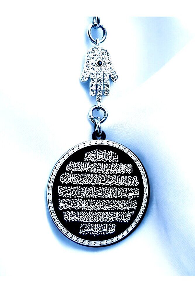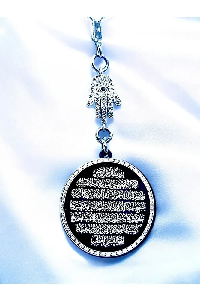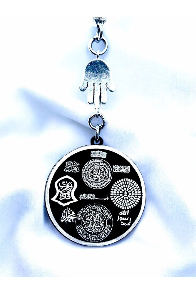 Siyah Çelik Çift Taraflı Ayetel Kürsi Hilye-i Şerif Araba Dikiz Ayna Süsü, Dualı Yeni Araba Hediyesi