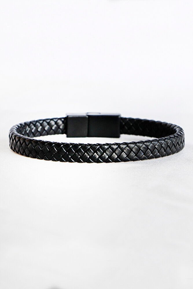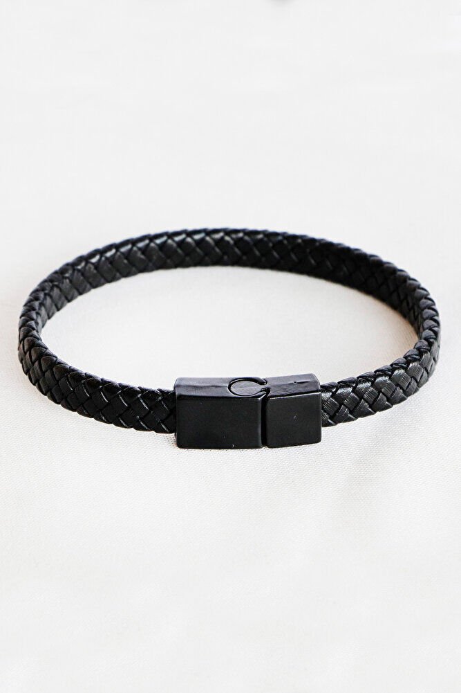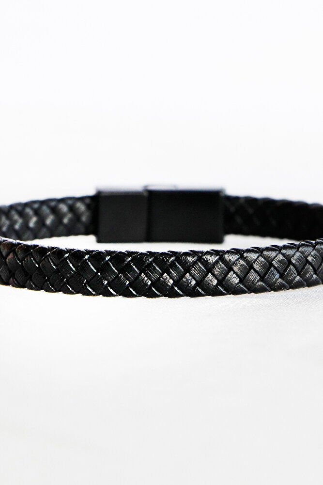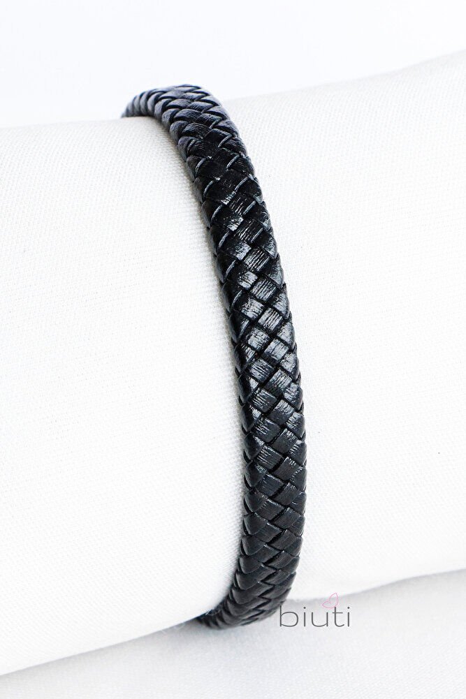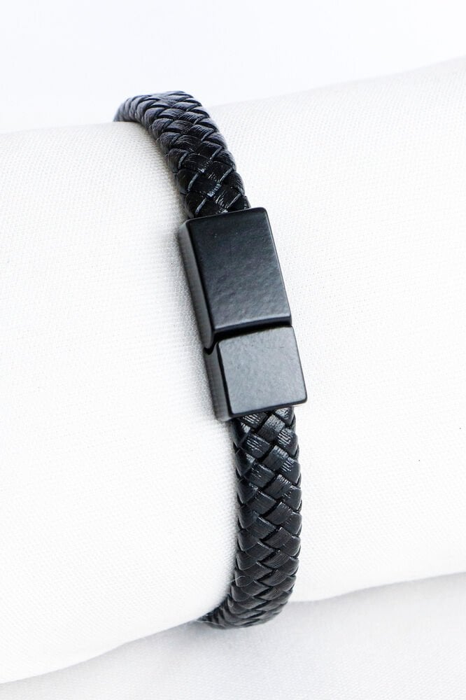 Siyah Hakiki Deri Örgülü Erkek Bileklik Mıknatıslı Metal Açma Kapama, Sevgililer Günü Hediyesi