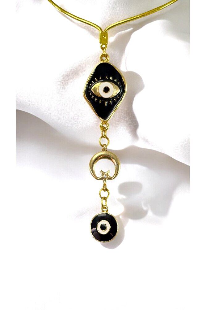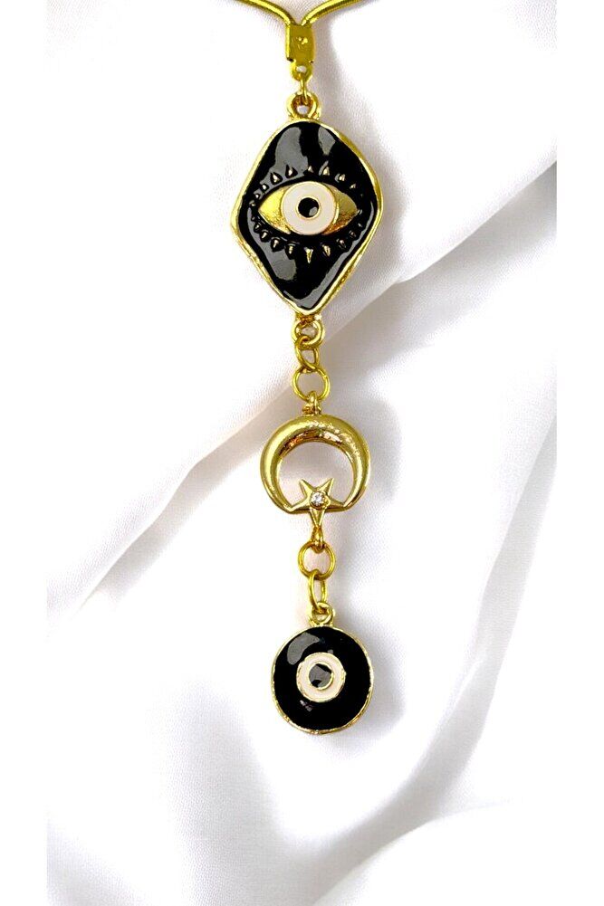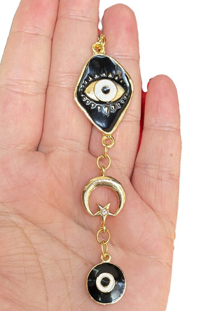 Siyah Nazar Boncuğu Göz Figürü Detaylı Ay Yıldız Dikiz Ayna Süsü, Tarz Yeni Araba Hediyesi