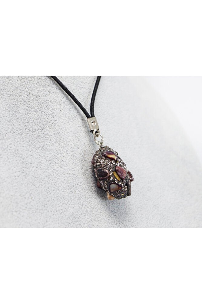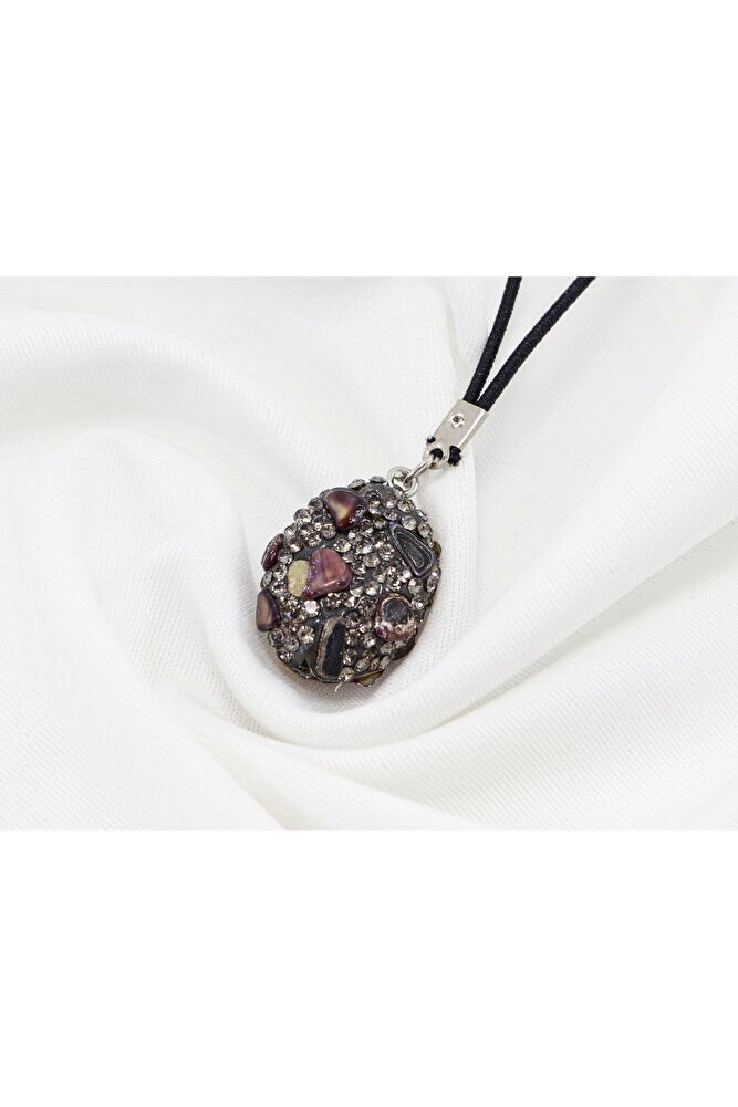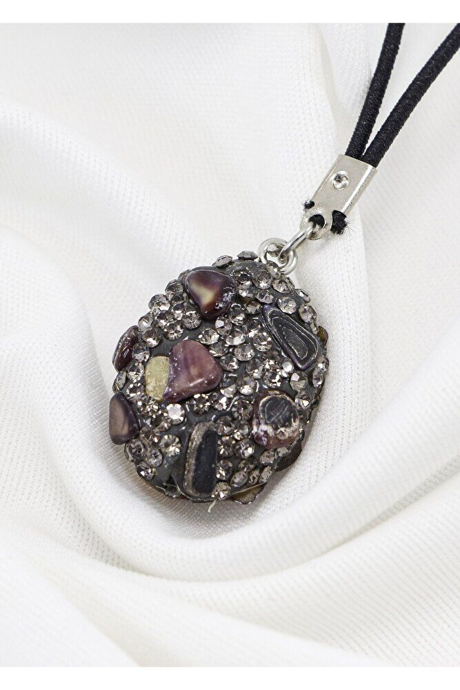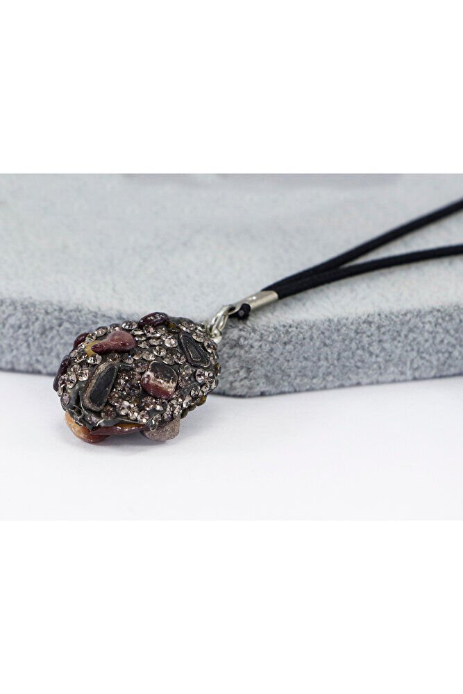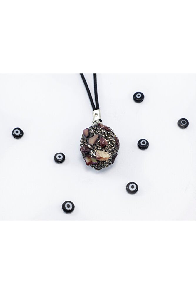 Siyah Parlak Taşlı Kahverengi Doğal Taşlı Araba Dikiz Ayna Süsü, Yeni Araba Hediyesi