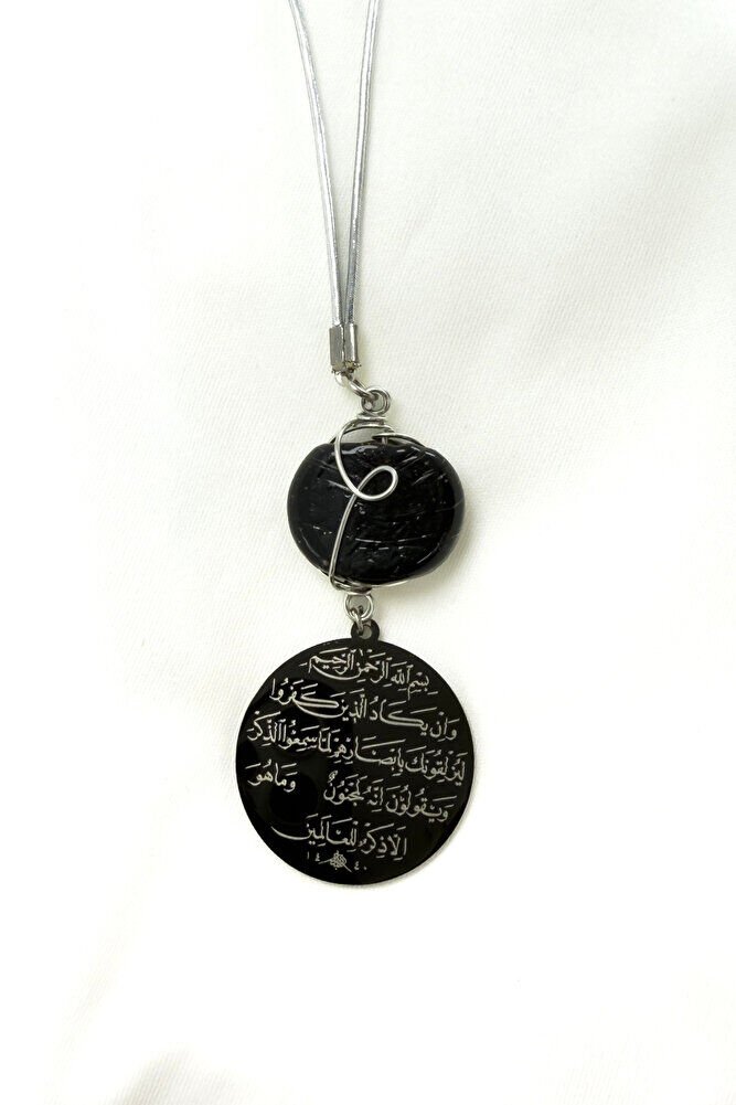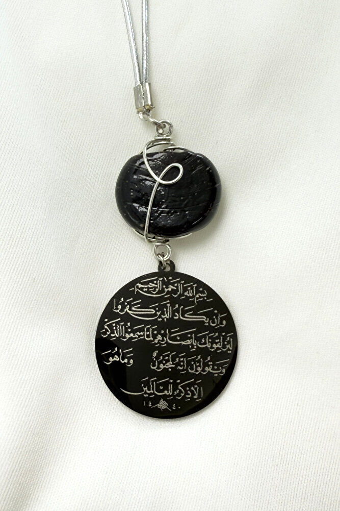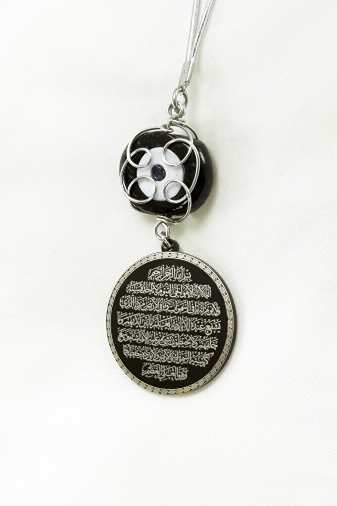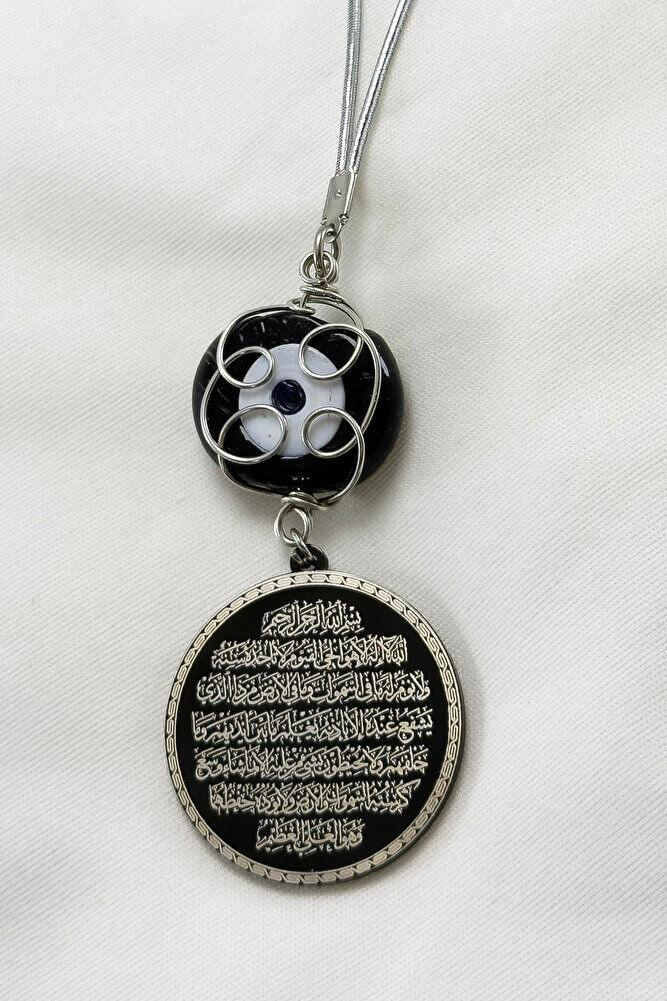 Siyah Sarma Dana Gözü Çelik Çift Taraflı Ayetel Kürsi /Nazar Ayeti Araba Dikiz Ayna Süsü