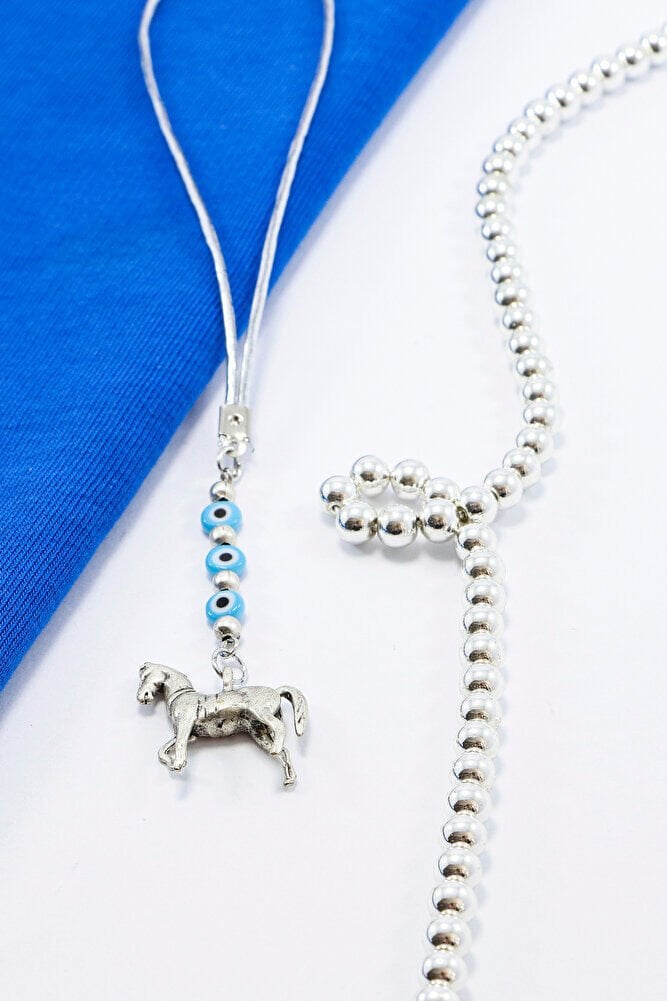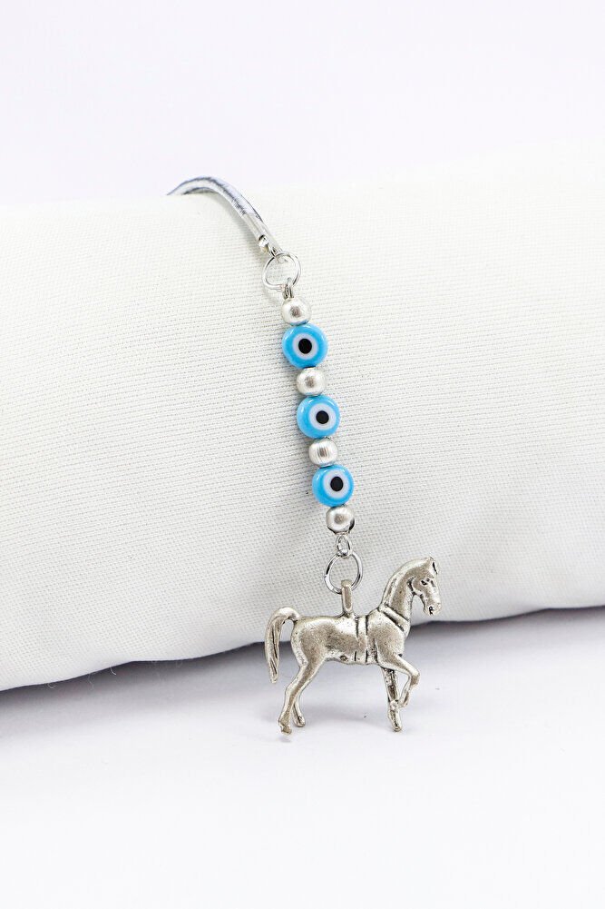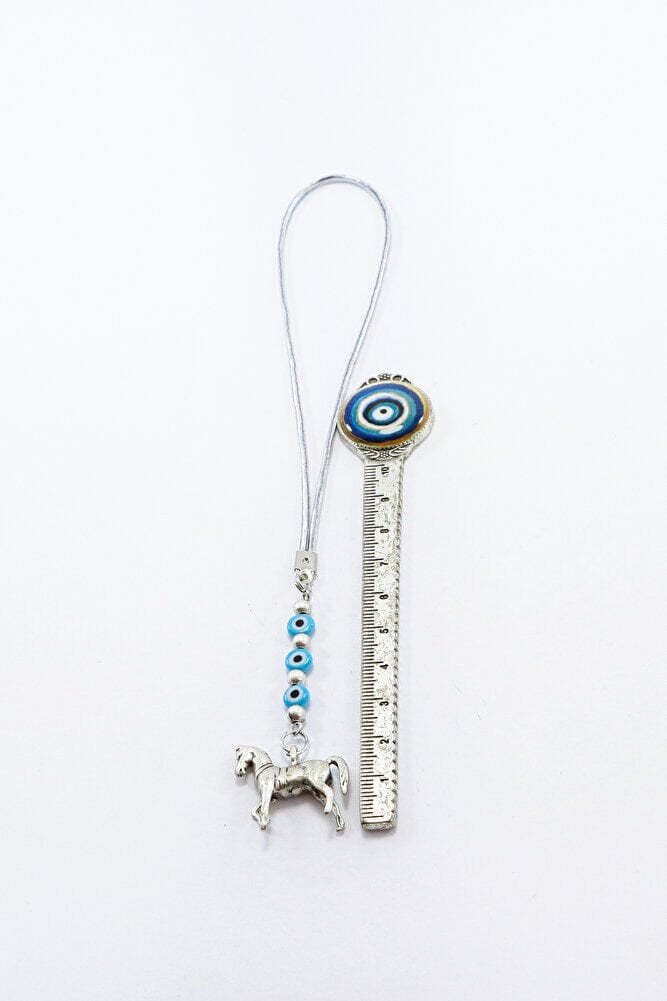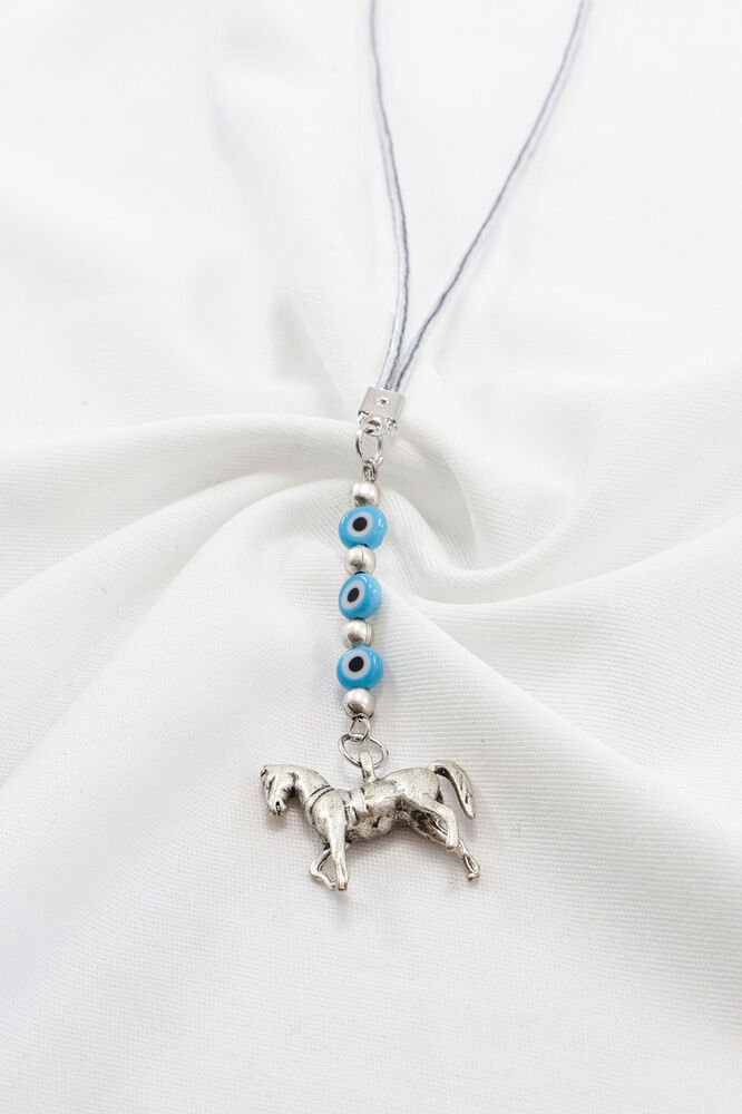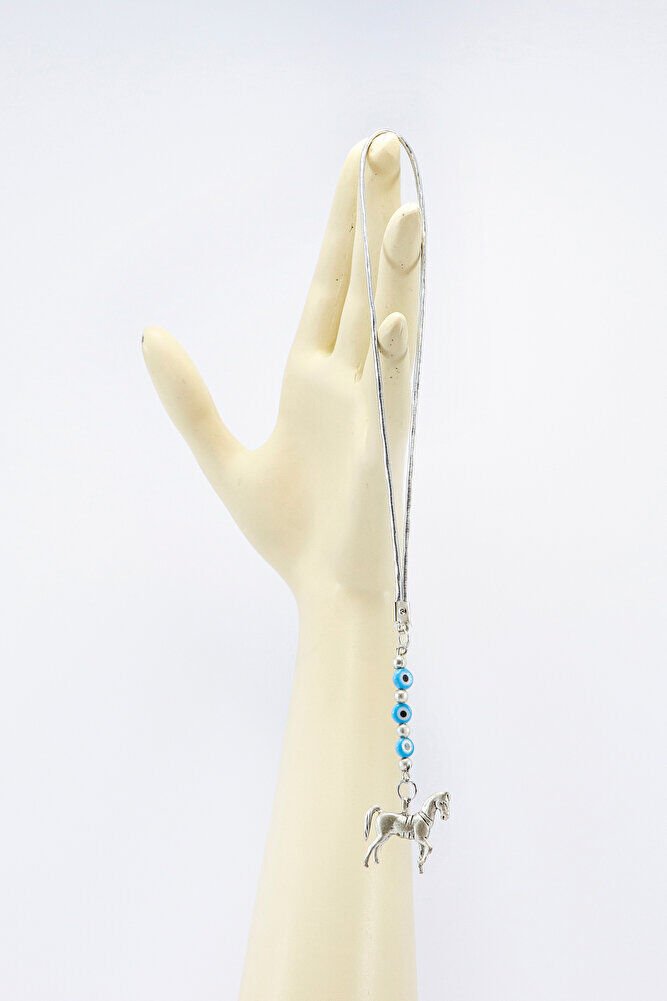 At figürü gümüş kaplamadır.; ; Nazar boncukları el yapımı camdır.; Nazar boncuğu, Türk kültüründe ve diğer bazı Orta Doğu ülkelerinde kullanılan bir tür koruyucu nesnedir.; ; Genellikle mavi ve beyaz renklerde tasarlanan küçük bir boncuktur ve içinde siyah bir nokta veya göz şekli bulunur.; Nazar boncuğunun amacı, kişinin üzerindeki kötü şansı, kıskançlığı veya nazarı (bakışları) uzaklaştırmak ve korumak için kullanılır.; ; Bu nedenle, evlerde, arabalarda, iş yerlerinde, takılarda ve hatta bebeklerin kıyafetlerinde kullanılabilir.;