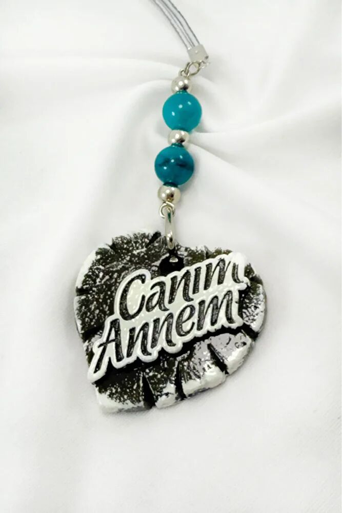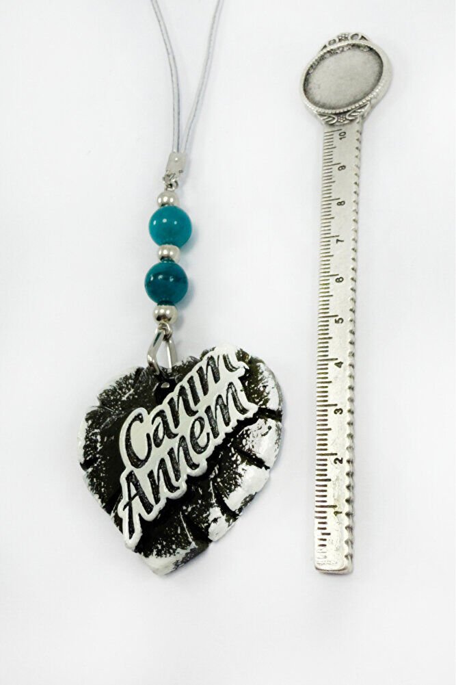 Turkuaz Doğal Taşlı Canım Annem Yazılı Kalpli Araba Dikiz Ayna Süsü