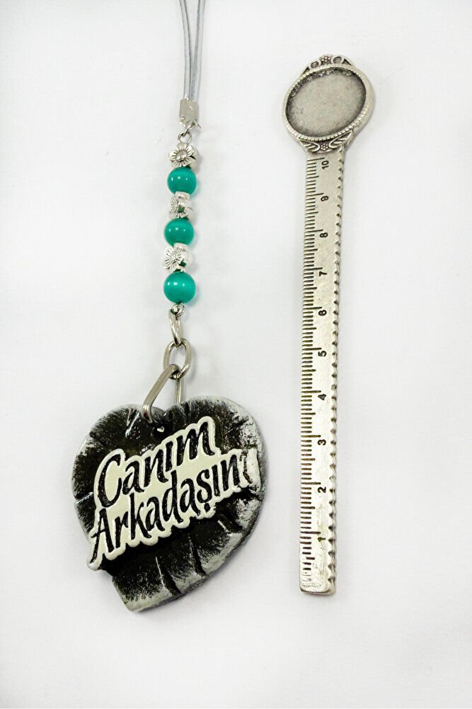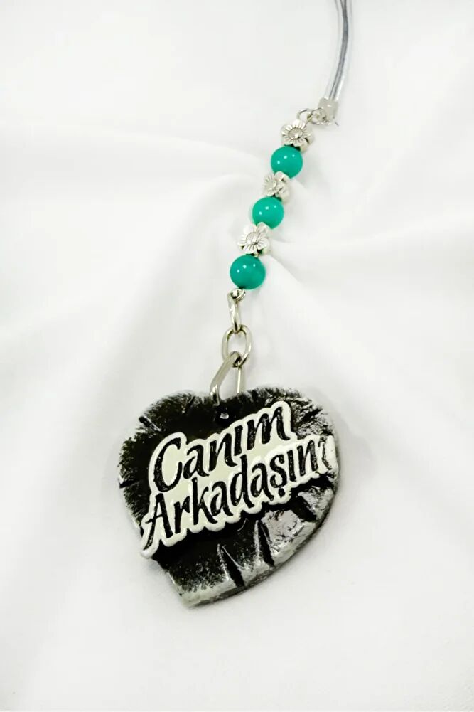 Turkuaz Doğal Taşlı Canım Arkadaşım Yazılı Kalpli Araba Dikiz Ayna Süsü