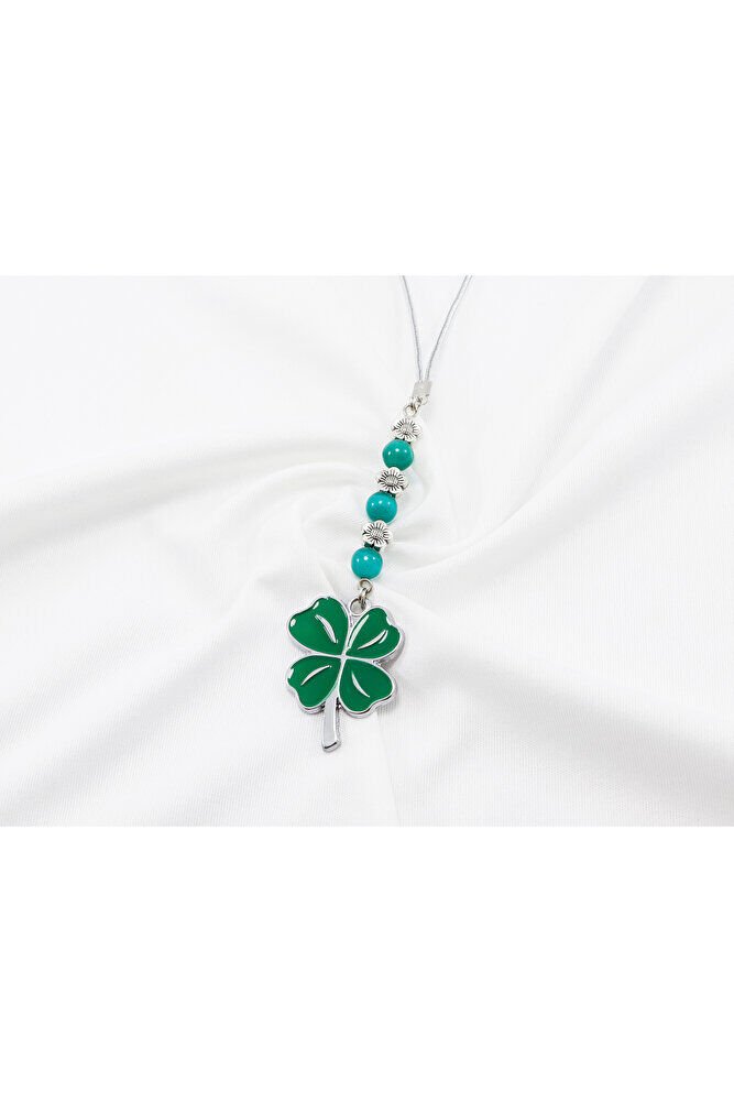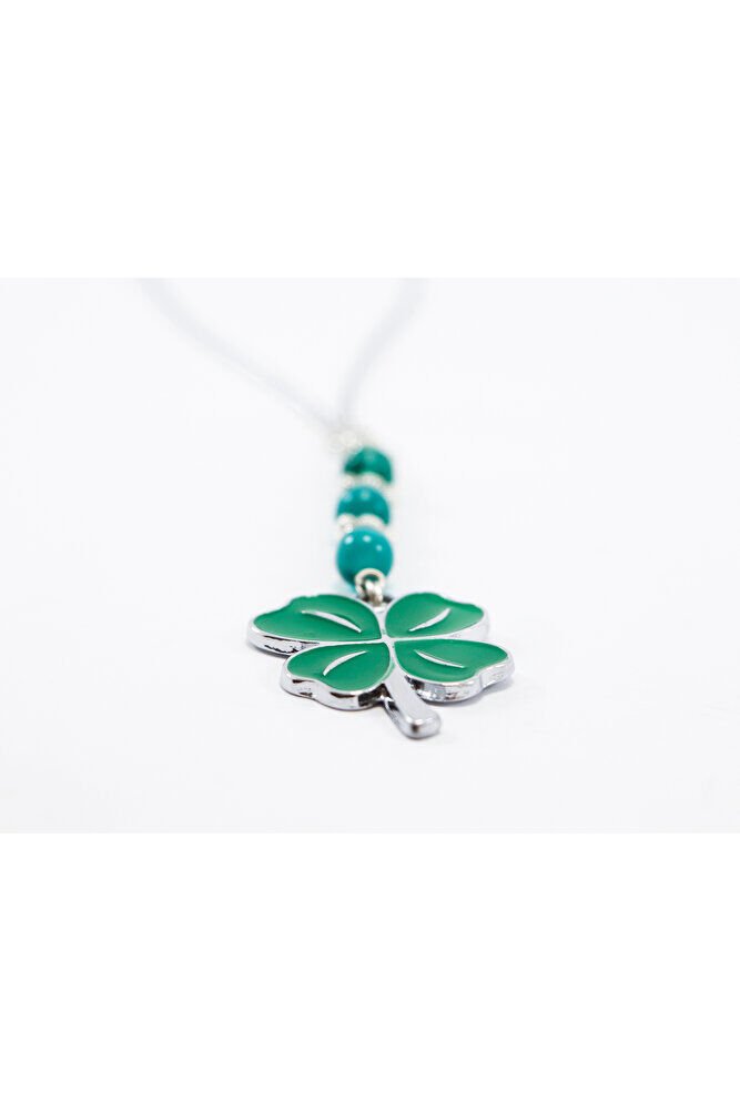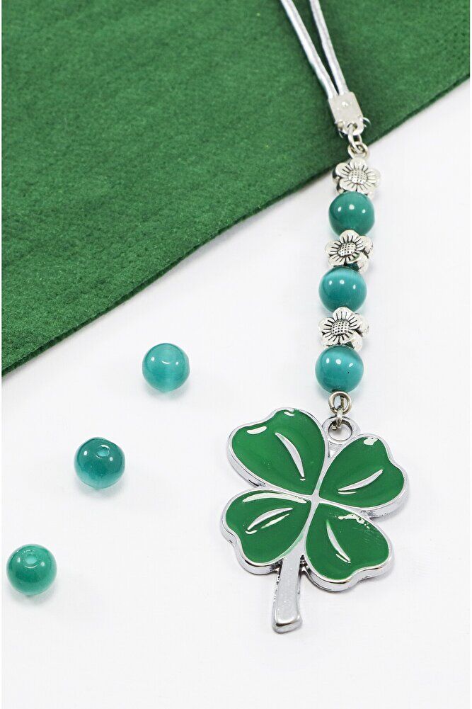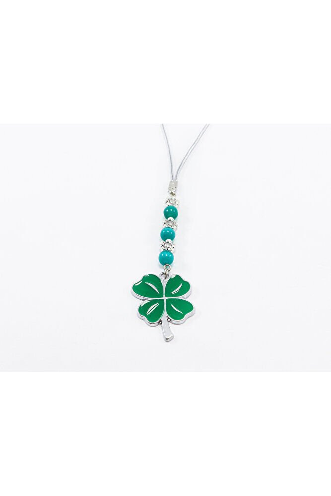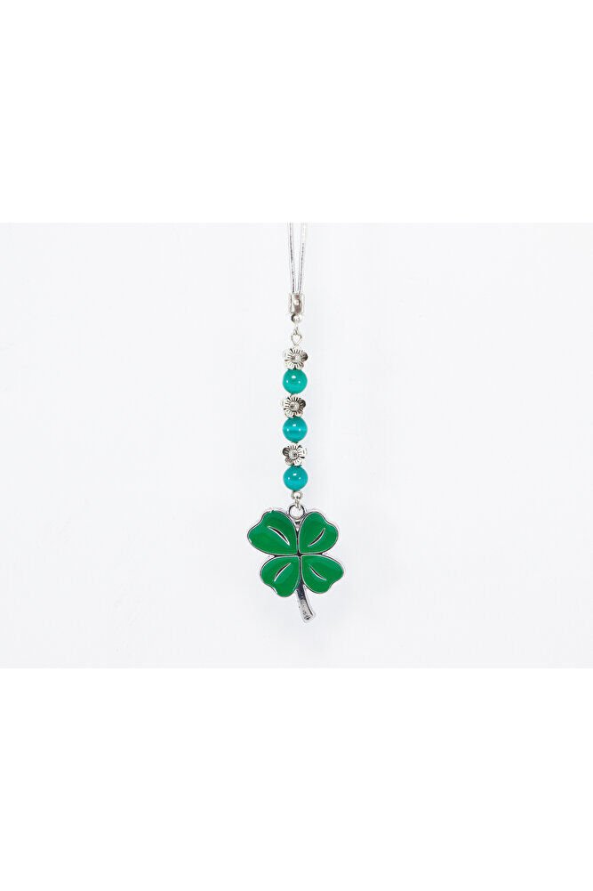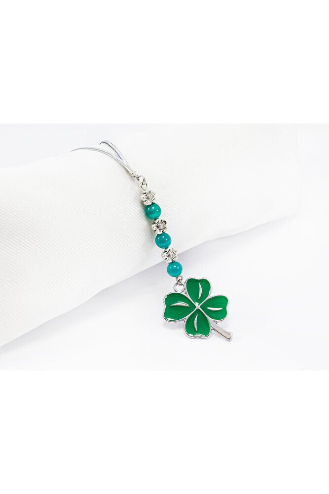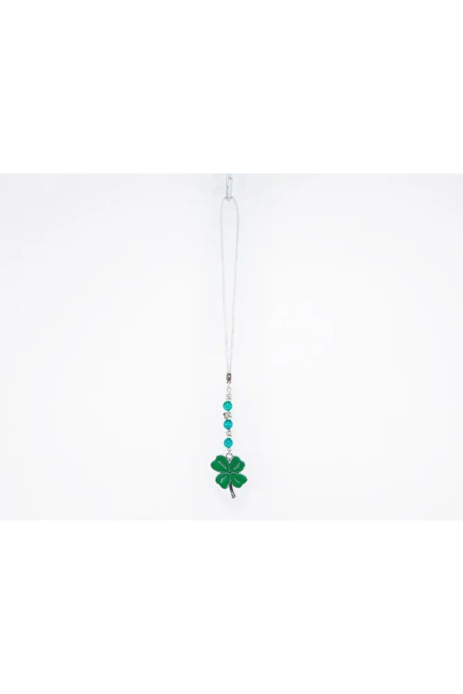 Turkuaz Doğal Taşlı Dört Yapraklı Şans Yoncası Araba Dikiz Ayna Süsü, Yeni Araba Hediyesi