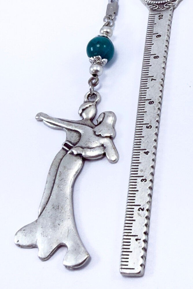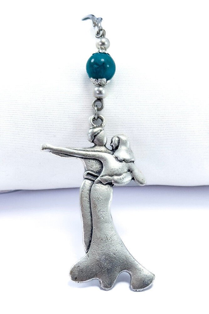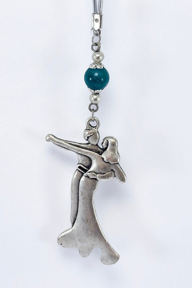 Turkuaz Doğal Taşlı Metal Dans Eden Çift Araba Dikiz Ayna Süsü, Yeni Araba Hediyesi