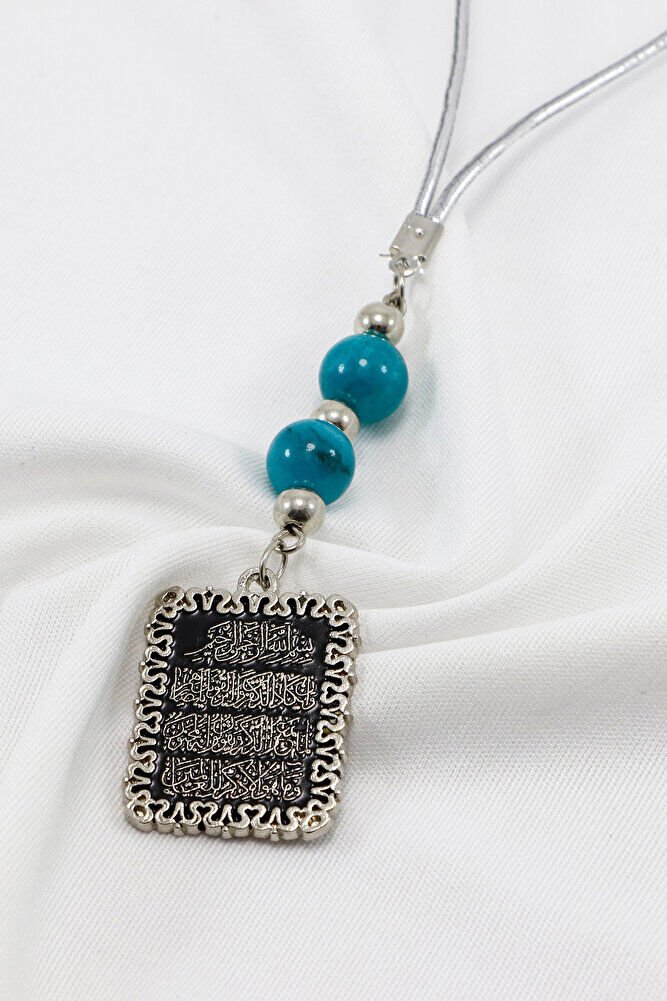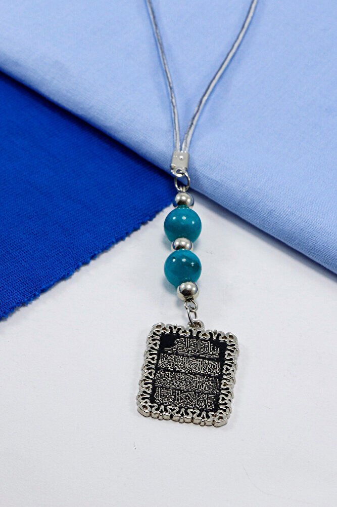 Ürün el yapımıdır.; El Yapımı olduğu için ufak farklılık ve değişiklikler bulunmaktadır.; İpi lastiklidir.; Latikli olduğu için her model araca rahatlıkla takılabilmektedir.; Ürün metaldir.; Turkuaz taşlar doğal taştır.; Ayetel Kürsi, Kur’an-ı Kerim’in Bakara Suresi’nde yer alan ve çeşitli inançlara göre güçlü anlamlar taşıdığı kabul edilen bir ayettir.; Yaygın inanışlara göre- Koruyucu bir etkisi olduğuna, özellikle gece okunmasının huzur verdiğine, - Allah’ın kudretini ve birliğini vurguladığına, - Manevi olarak kişinin iç huzurunu artırabileceğine inanılır.; Bu anlamlar, bireylerin inanç düzeyine ve dini yorumlarına göre farklılık gösterebilir.; Nazar ayeti olarak bilinen Kalem Suresi 51-52. ayetler, bazı inanışlara göre nazardan korunma amacıyla okunur.; Kabul edilen yorumlara göre; - Kötü bakışlardan ve olumsuz enerjilerden korunmaya yardımcı olabileceği, - Manevi bir siper görevi gördüğü, - Allah’a sığınmanın bir ifadesi olarak değerlendirildiği düşünülür.; Bu tür kullanım ve anlamlar, inançlara ve kişisel yaklaşımlara göre farklılık gösterebilir.;