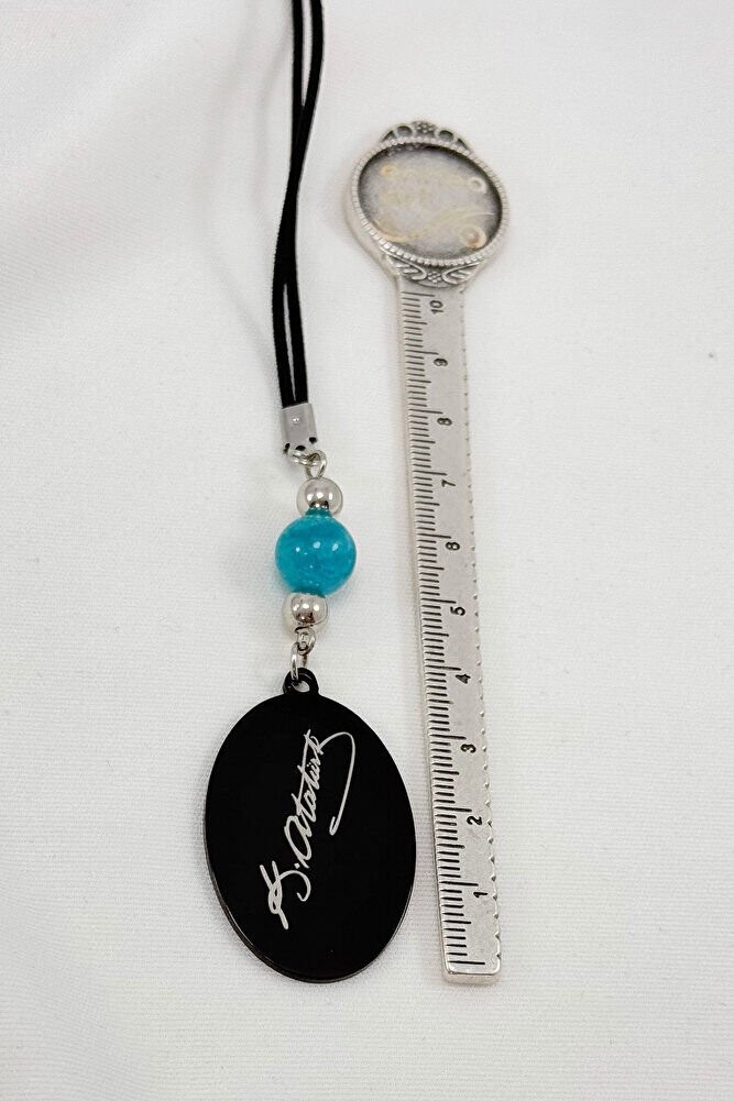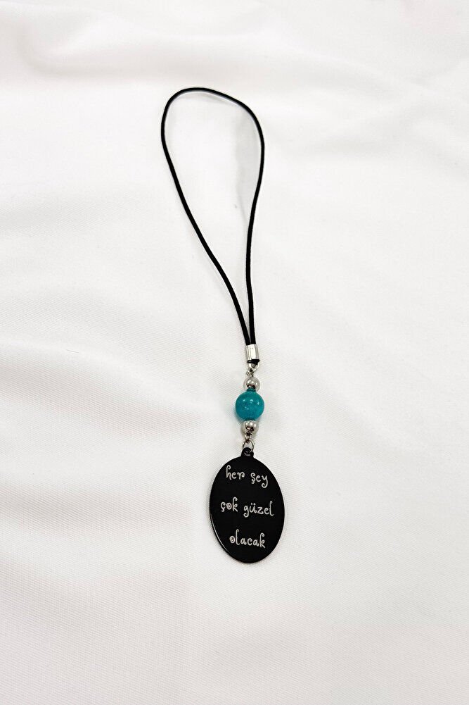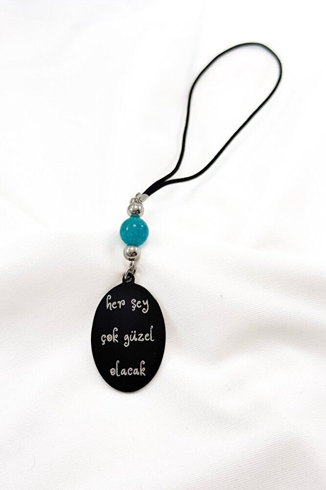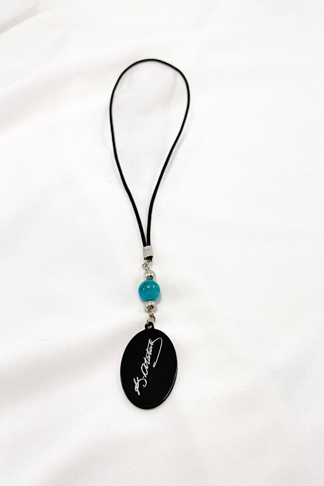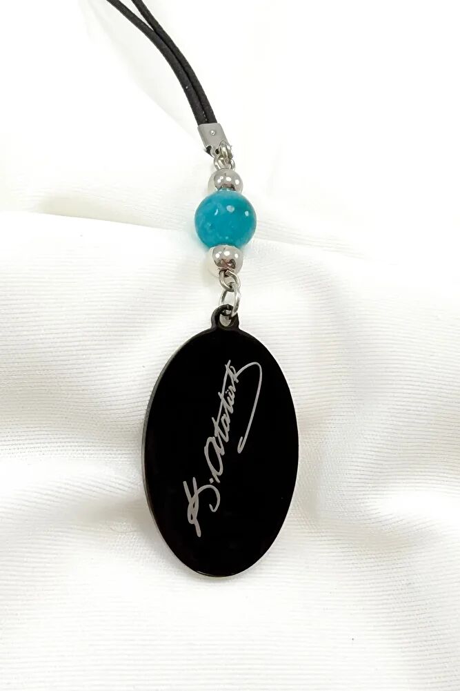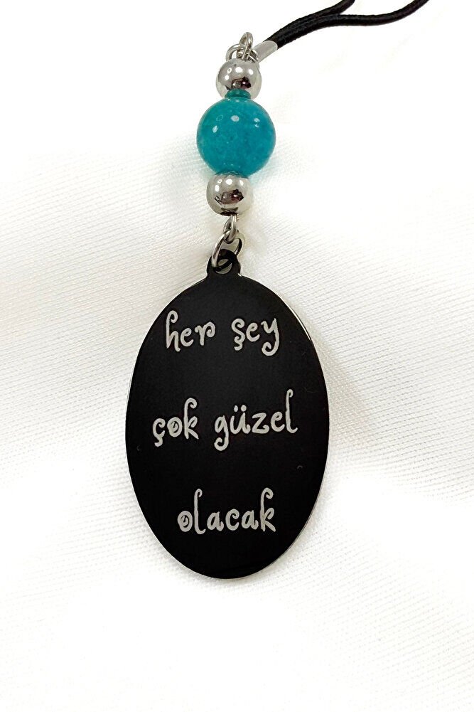 Turkuaz Doğal Taşlı Siyah Çelik Her Şey Çok Güzel Olacak K. Atatürk Yazılı Araba Dikiz Ayna Süsü