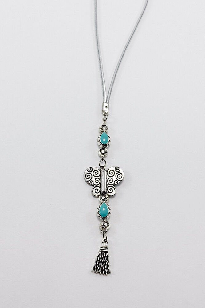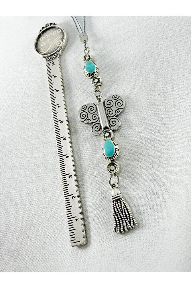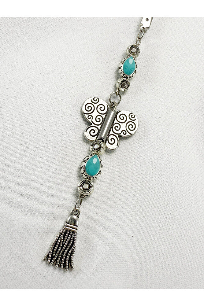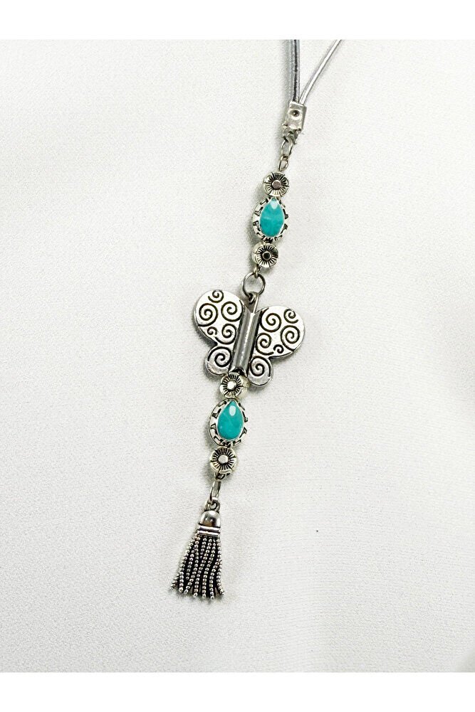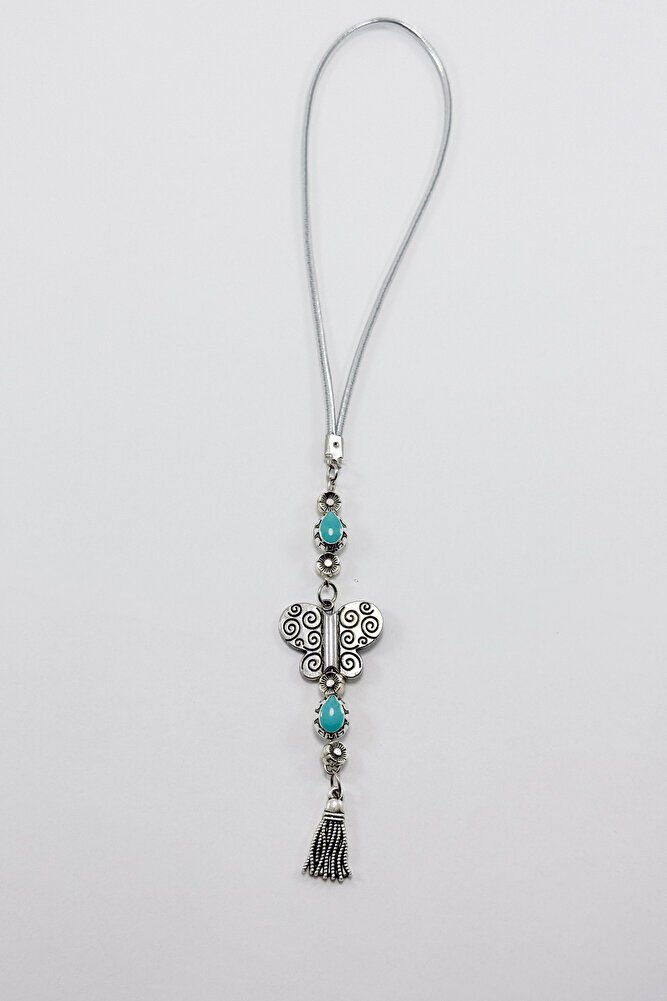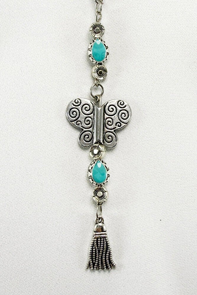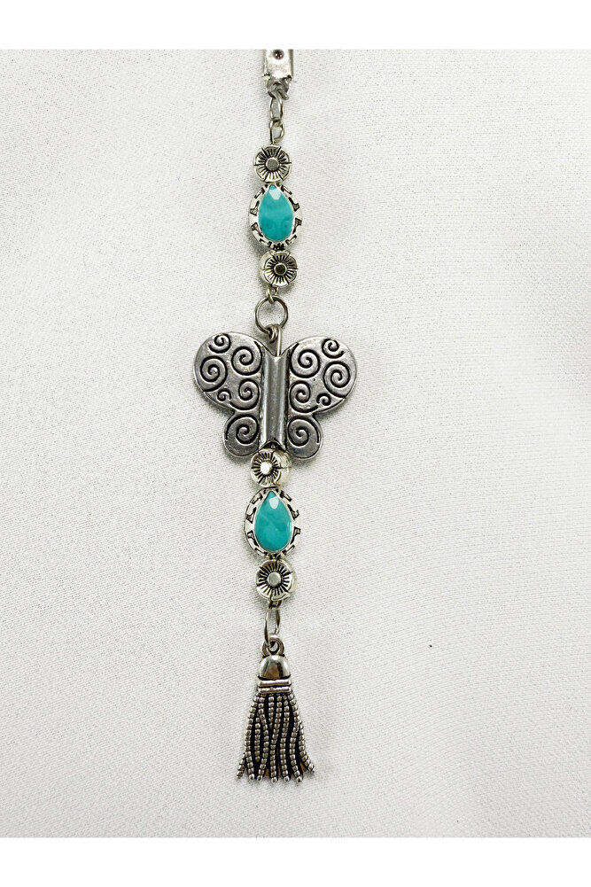 Turkuaz Metalik Boncuklu Metal Kelebek Araba Dikiz Ayna Süsü/Püsküllü Yeni Araba Hediyesi