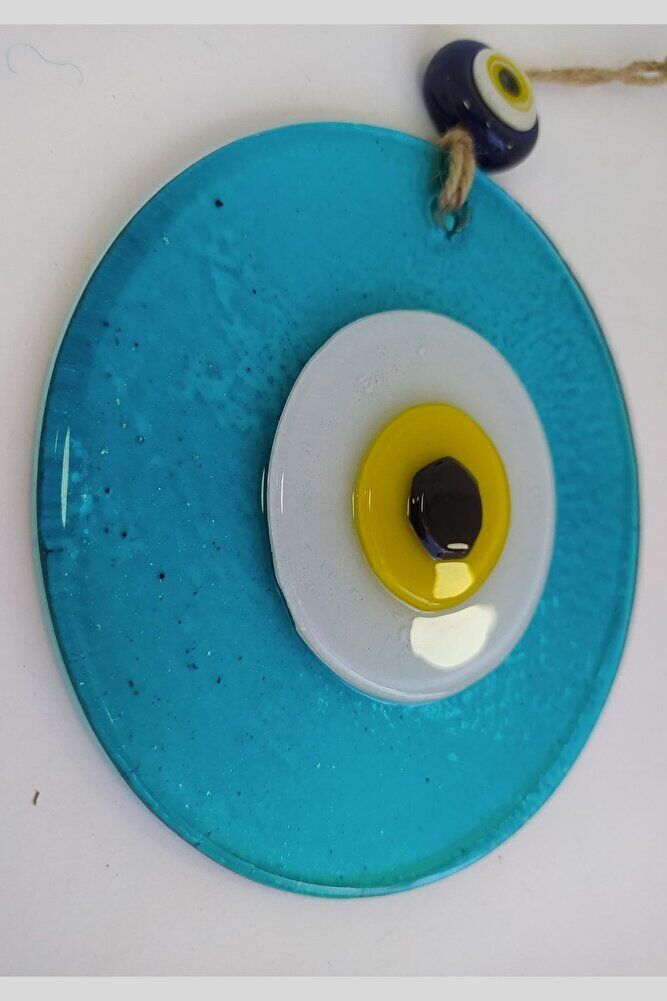 Turkuaz Nazar Boncuğu El Yapımı Cam Duvar Askısı