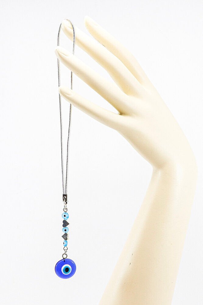 Turkuaz Nazarlı El Yapımı Cam Nazar Boncuklu Araba Dikiz Ayna Süsü, Kalpli Yeni Araba Hediyesi