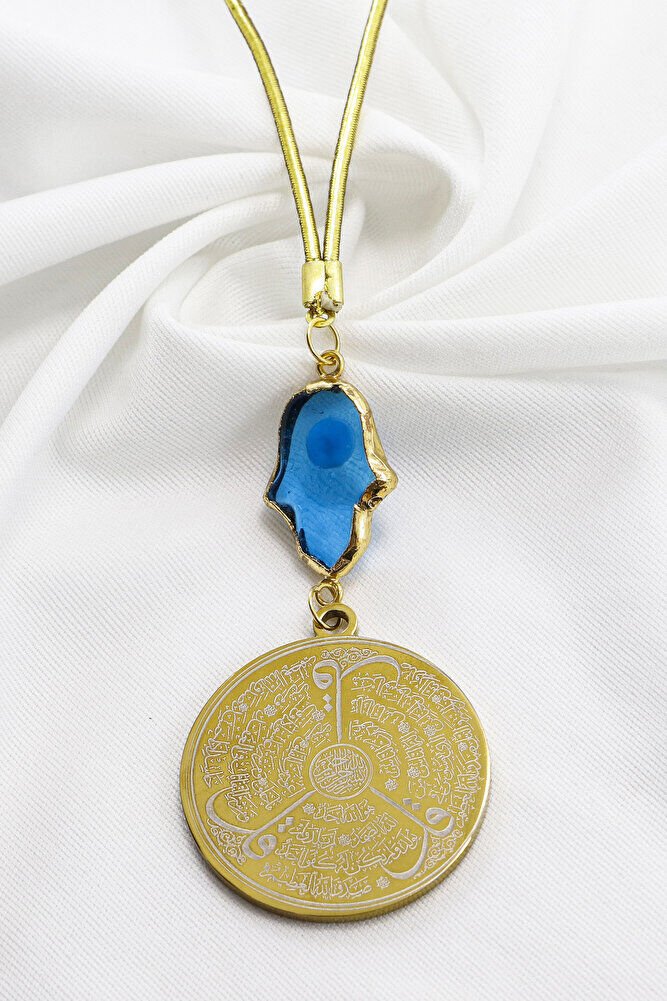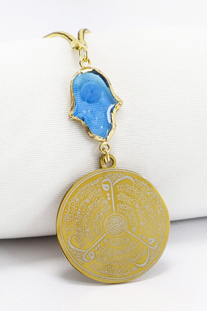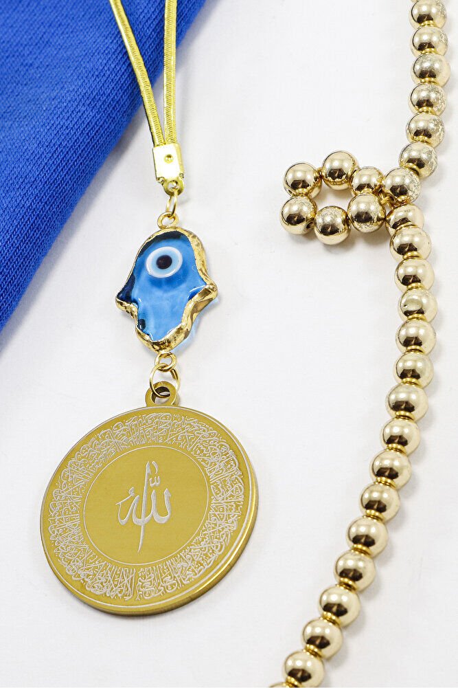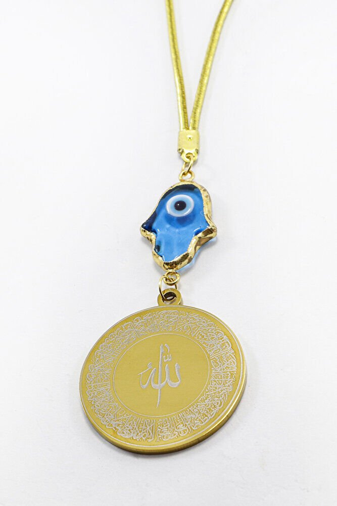 Turkuaz Nazarlı Hamse Eli Gold Çelik Allah Lafzı Ayetel Kürsi Felak Nas İhlas Dikiz Ayna Süsü (3,5)