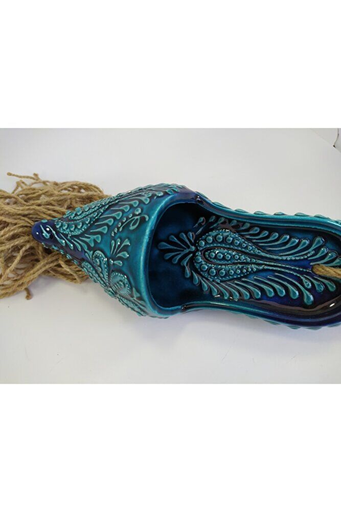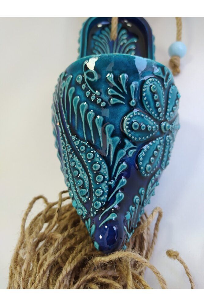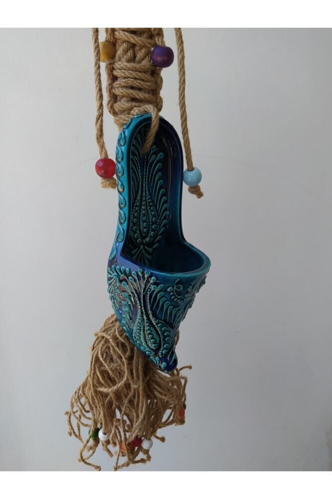 Turkuaz Seramik Çarık Makrome Duvar Dekoru Hediyelik Eşya