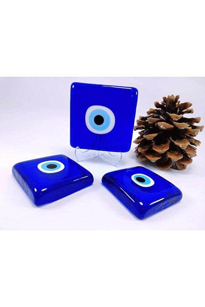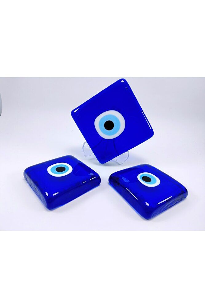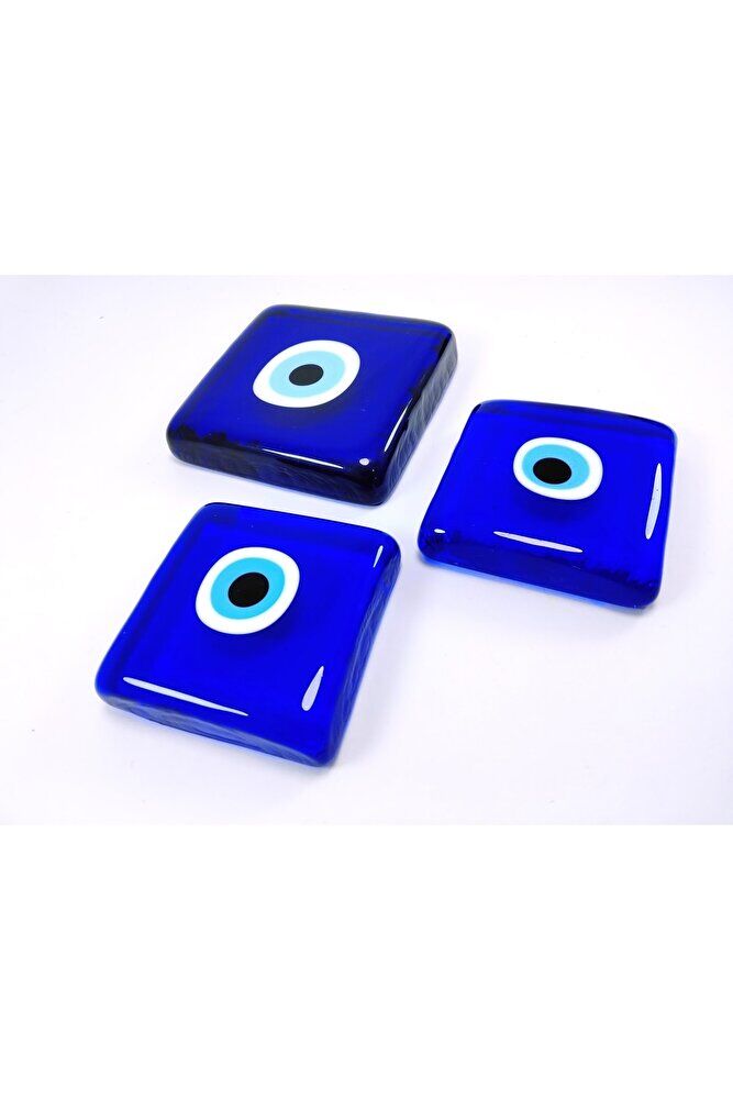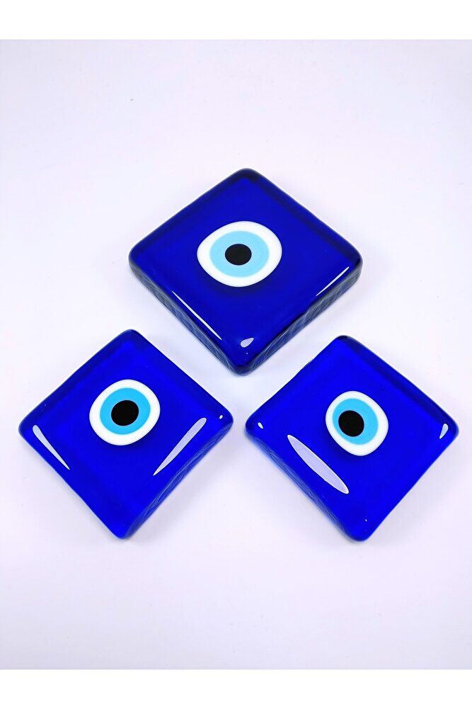 Üçlü Deliksiz Kare Nazar Boncuğu El Yapımı Cam Masaüstü Dekor Seti 8-6-6 Cm
