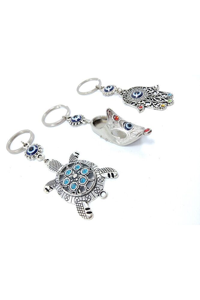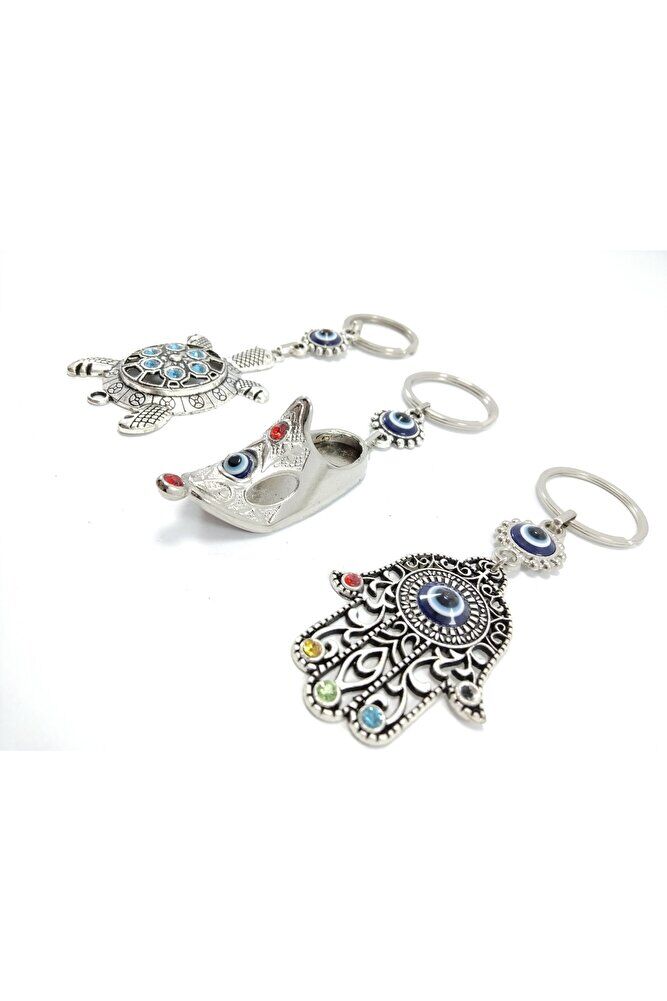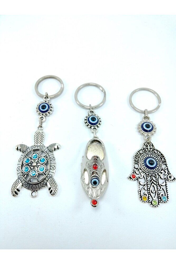 Üçlü Metal Nazar Boncuklu Anahtarlık Seti El Yapımı Hediyelik Eşya
