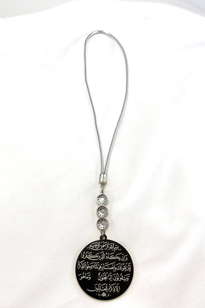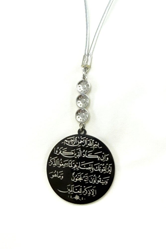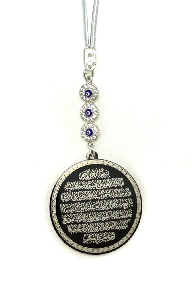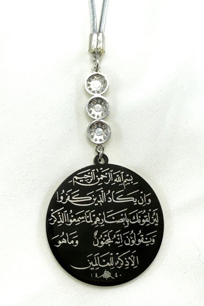 Üçlü Zirkon Taşlı Siyah Çelik Çift Taraflı Ayetel Kürsi / Nazar Ayeti Araba Dikiz Ayna Süsü