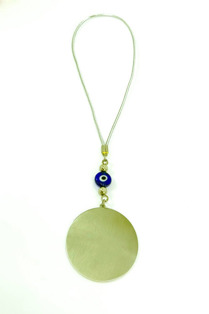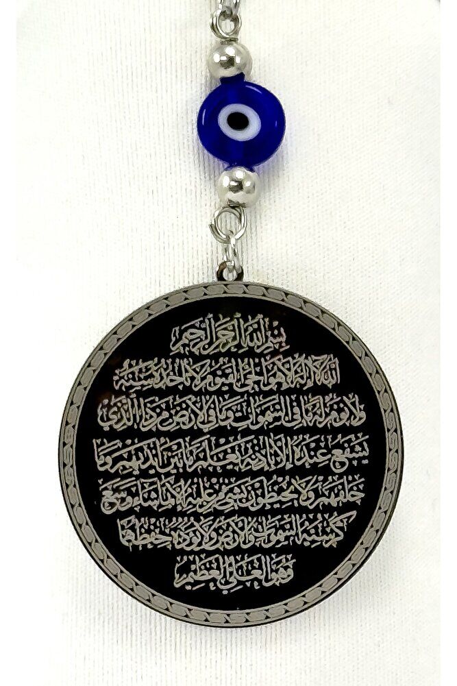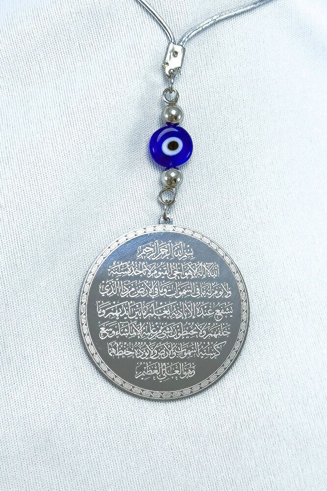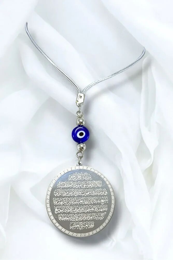 Yassı Nazar Boncuklu Çelik Ayetel Kürsi Dualı Araba Dikiz Ayna Süsü, Yeni Araba Hediyesi
