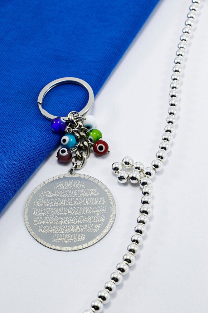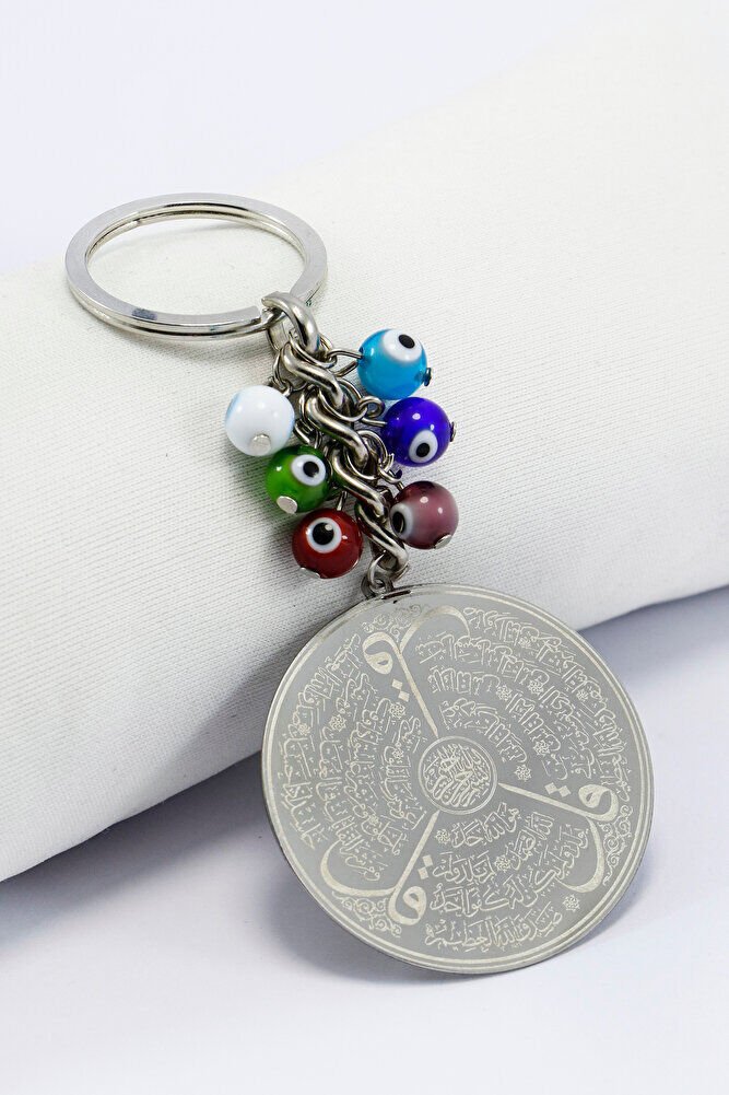 Yedi Çakra Nazar Boncuklu Çelik Plaka Ayet'el Kürsi Felak Nas İhlas Anahtarlık